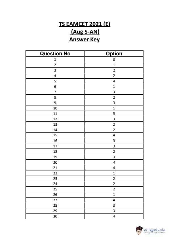 | TS EAMCET 2021 Engineering Question Paper PDF | TS EAMCET 2021 Engineering Answer Key PDF |