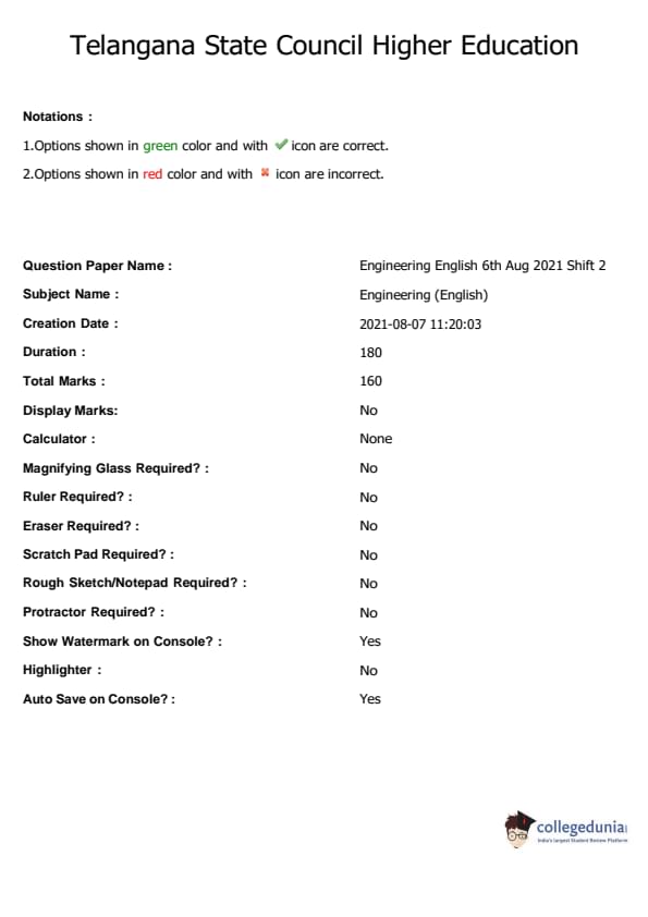 | TS EAMCET 2021 Engineering Question Paper PDF | TS EAMCET 2021 Engineering Answer Key PDF |