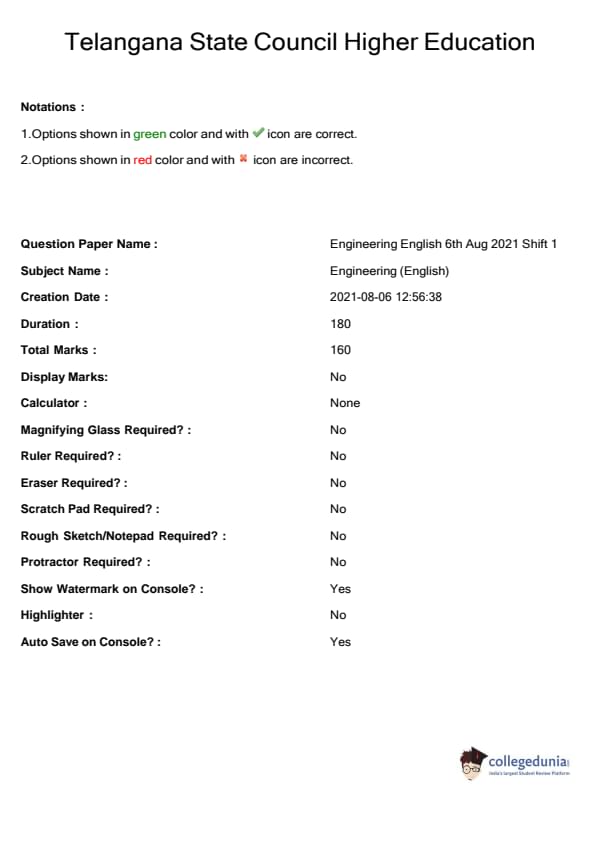 | TS EAMCET 2021 Engineering Question Paper PDF | TS EAMCET 2021 Engineering Answer Key PDF |