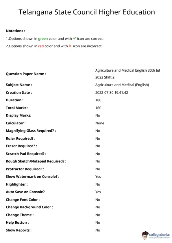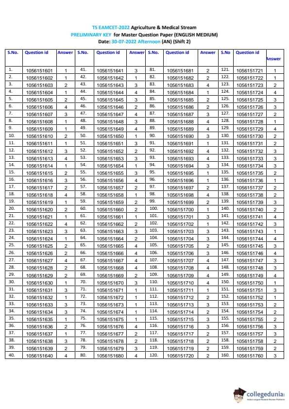 | TS EAMCET 2022 Question Paper | TS EAMCET 2022 Answer Key |