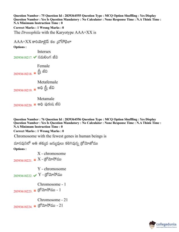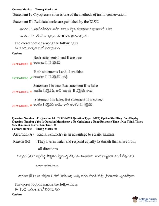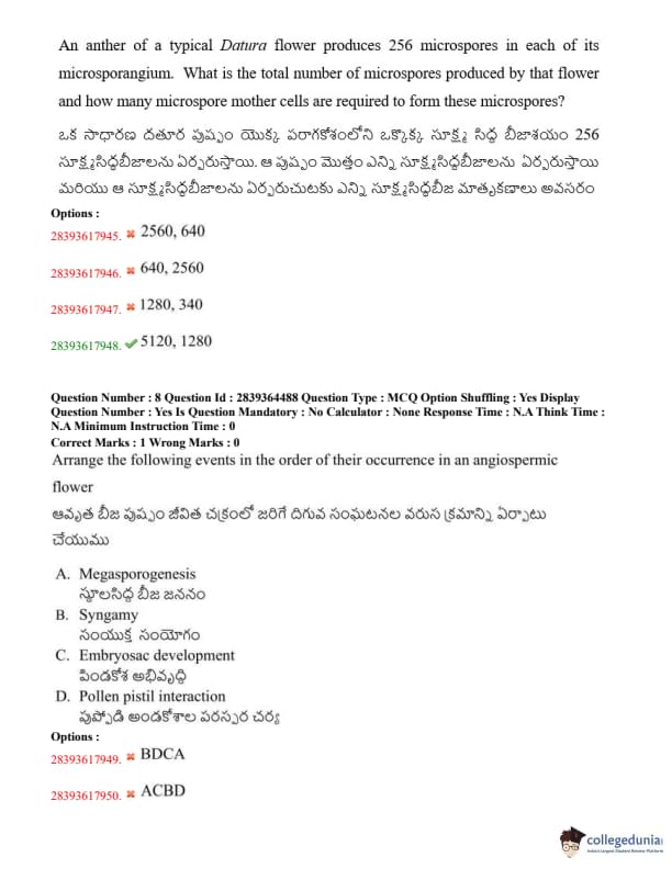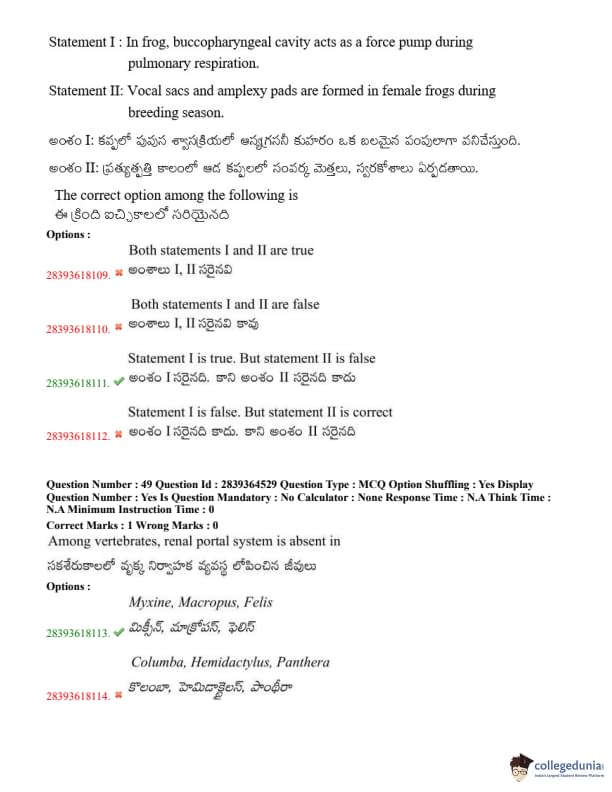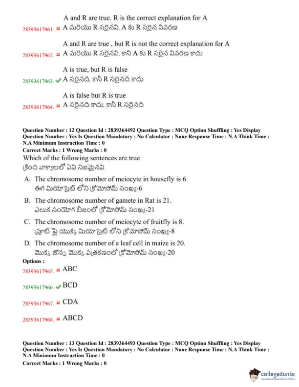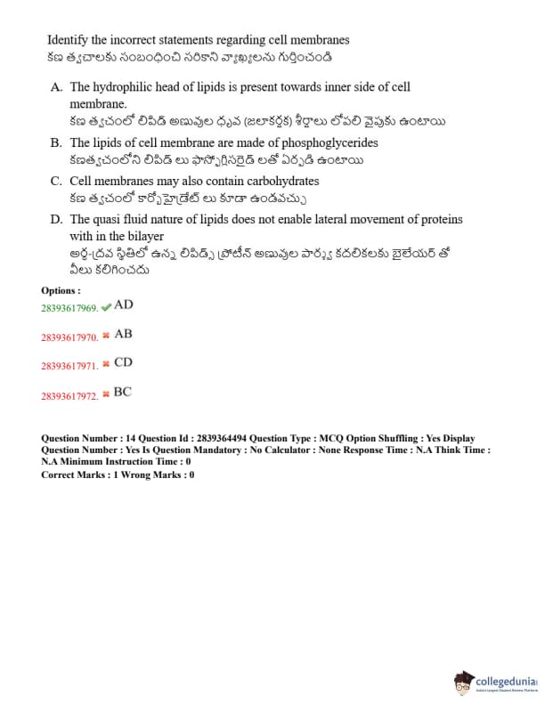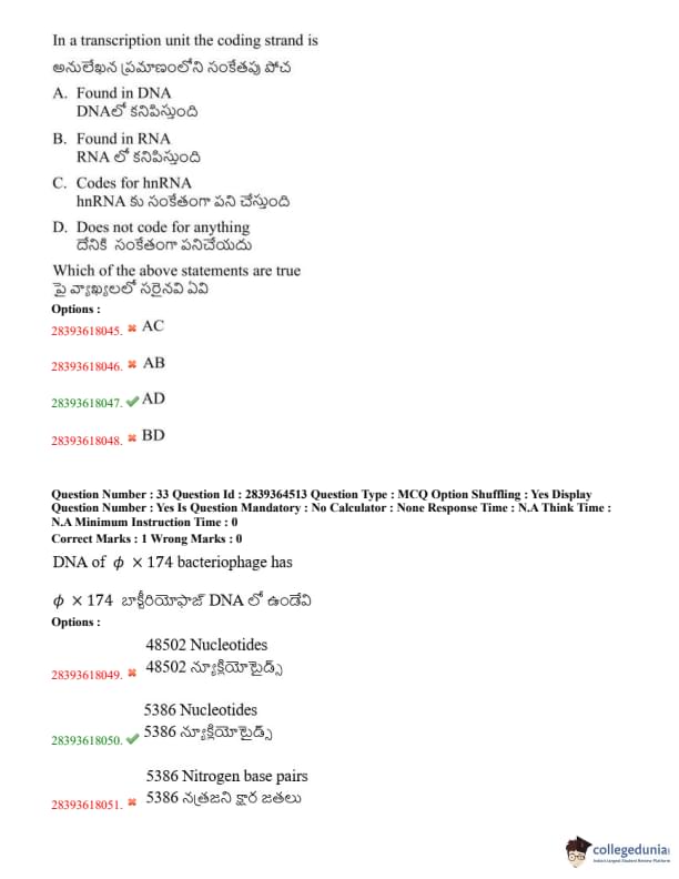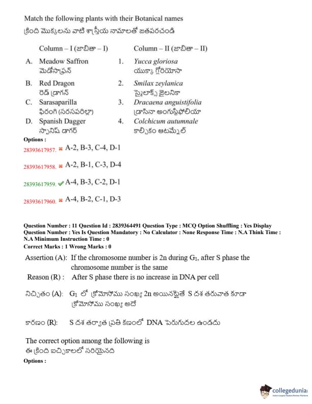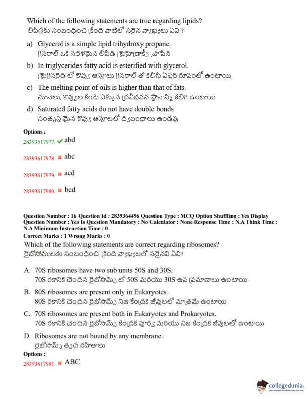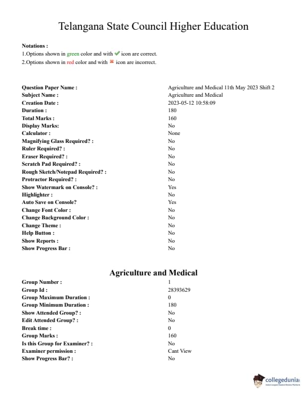 TS EAMCET 2023 Question Paper May 11 Shift 2 PDF is available here for download. TS EAMCET 2023 Question Paper consisted of 160 questions carrying 1 mark each. TS EAMCET 2023 Question Paper May 11 Shift 2 PDF for BiPC included four subjects, Physics, Chemistry and Biology with Botany & Zoology. Each subject includes 40 questions.