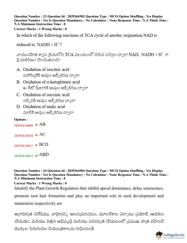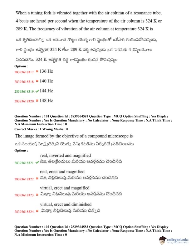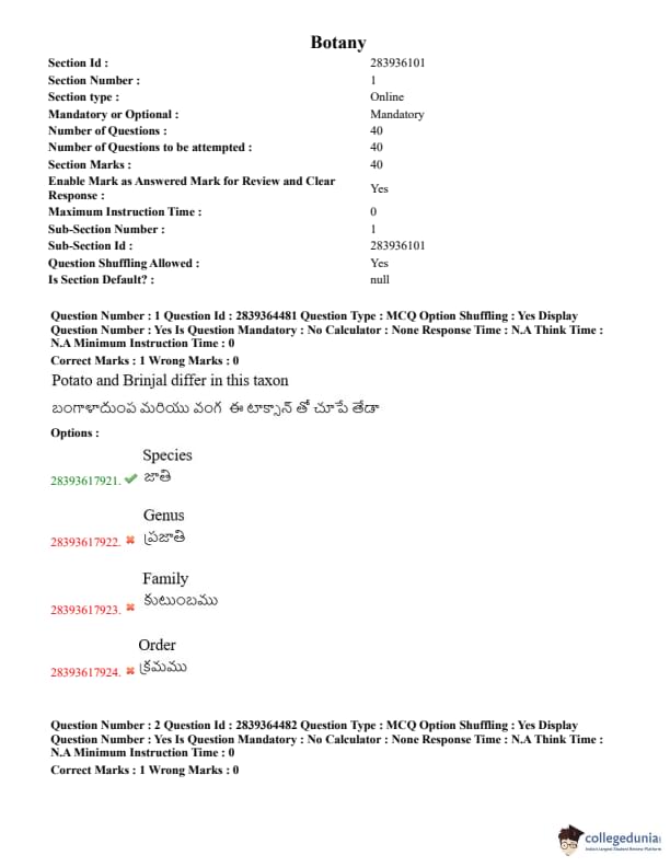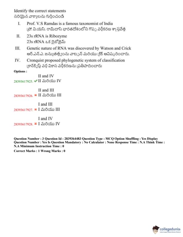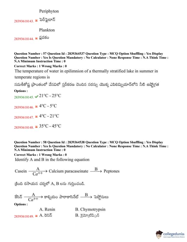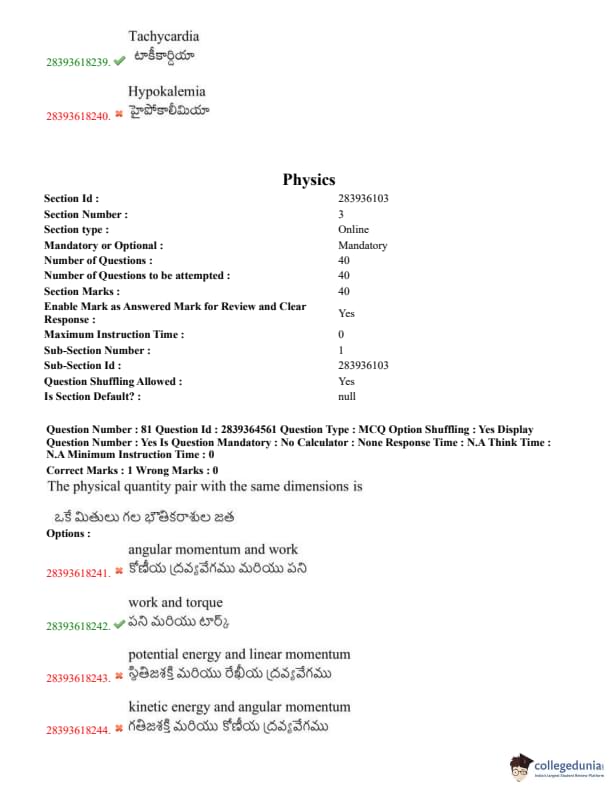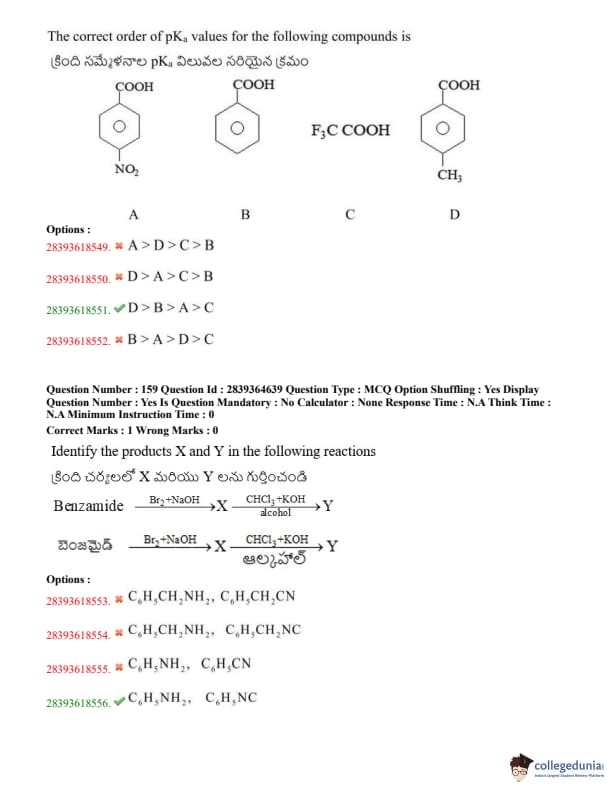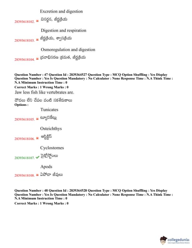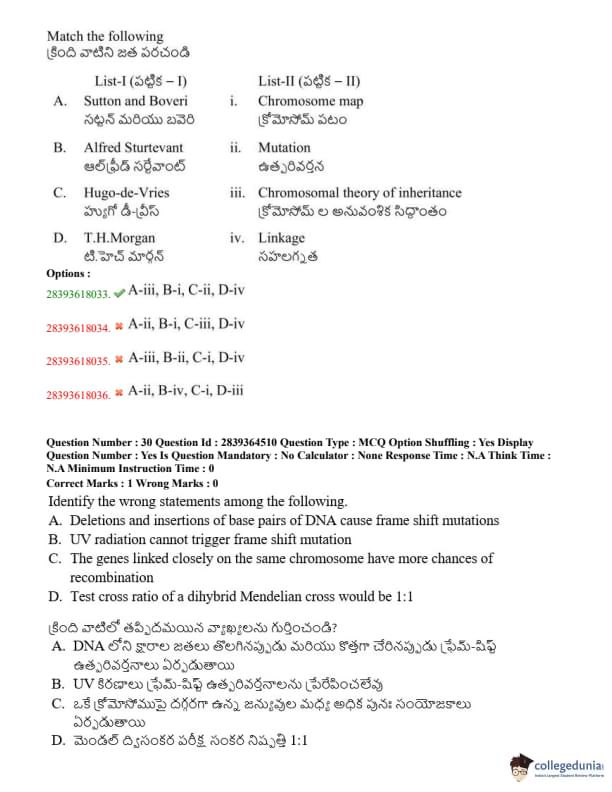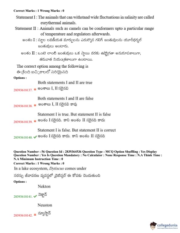 TS EAMCET 2023 Question Paper May 11 Shift 2 PDF is available here for download. TS EAMCET 2023 Question Paper consisted of 160 questions carrying 1 mark each. TS EAMCET 2023 Question Paper May 11 Shift 2 PDF for BiPC included four subjects, Physics, Chemistry and Biology with Botany & Zoology. Each subject includes 40 questions.