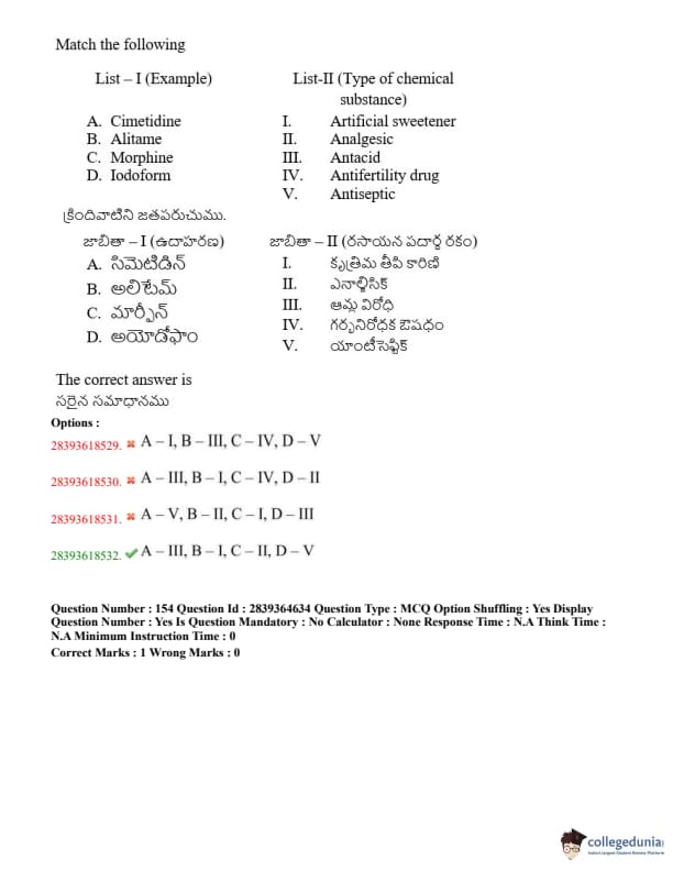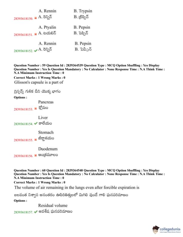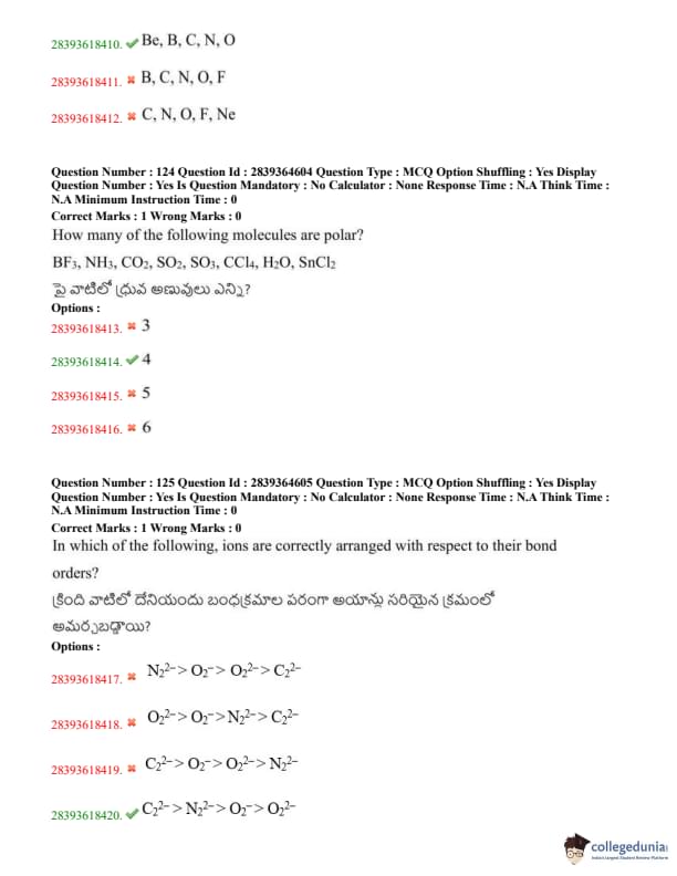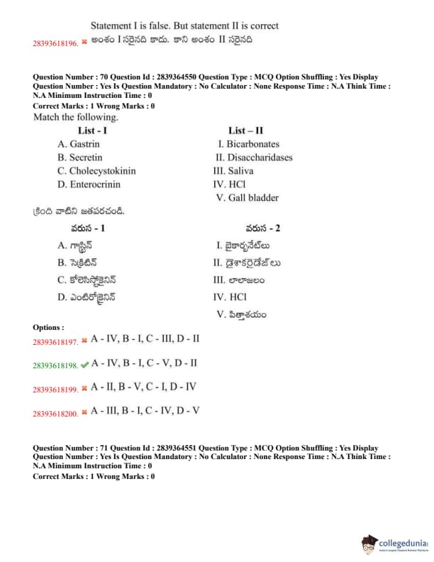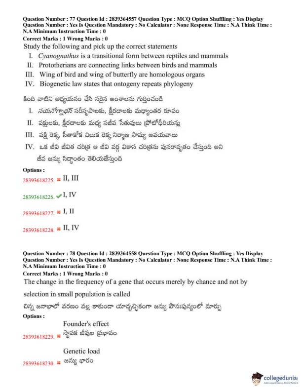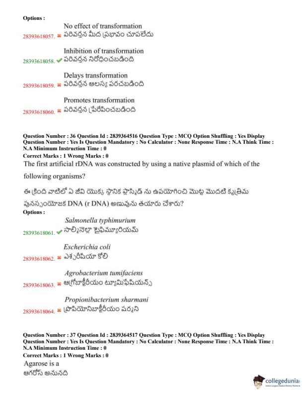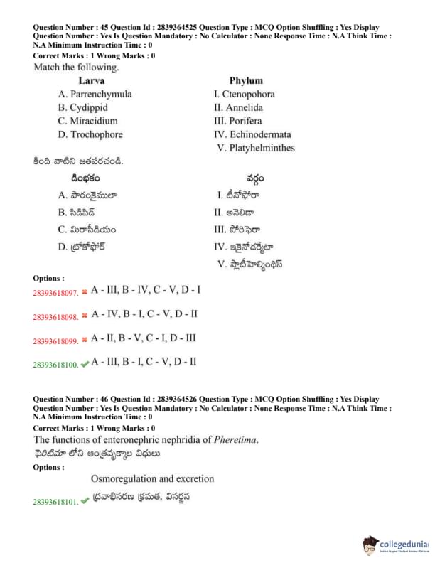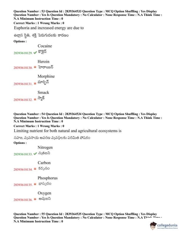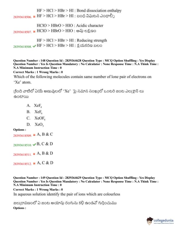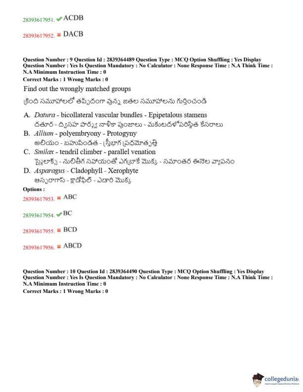 TS EAMCET 2023 Question Paper May 11 Shift 2 PDF is available here for download. TS EAMCET 2023 Question Paper consisted of 160 questions carrying 1 mark each. TS EAMCET 2023 Question Paper May 11 Shift 2 PDF for BiPC included four subjects, Physics, Chemistry and Biology with Botany & Zoology. Each subject includes 40 questions.