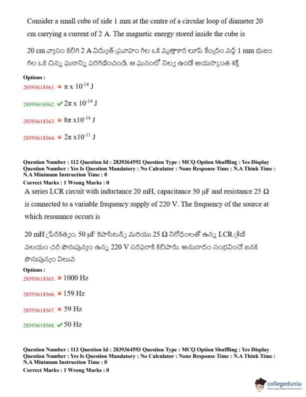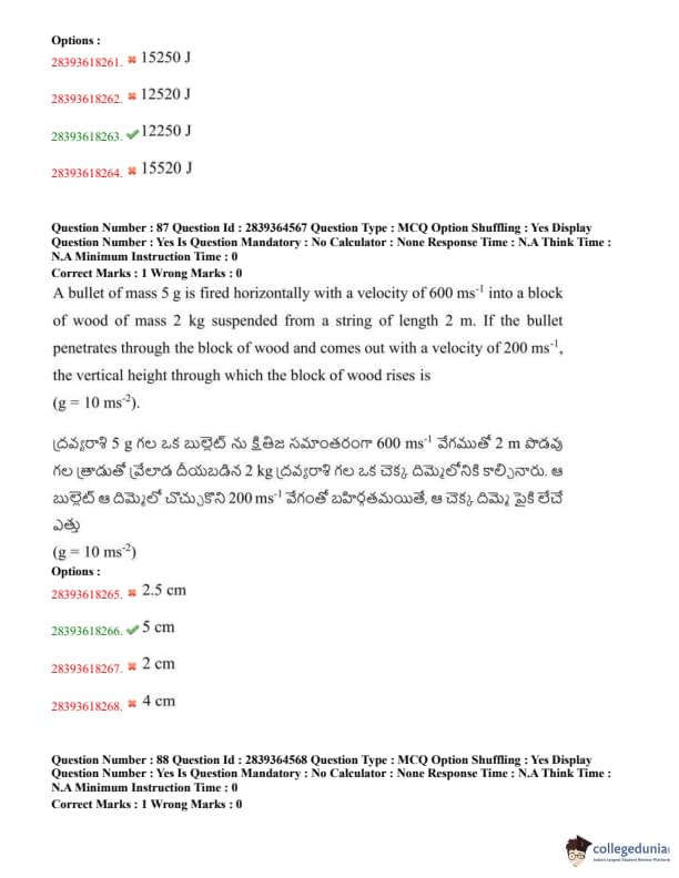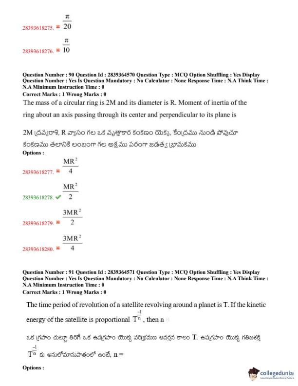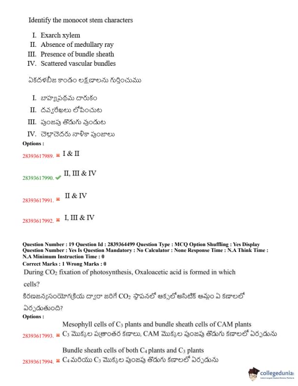 | TS EAMCET 2020 Question Paper | TS EAMCET 2019 Question Paper |