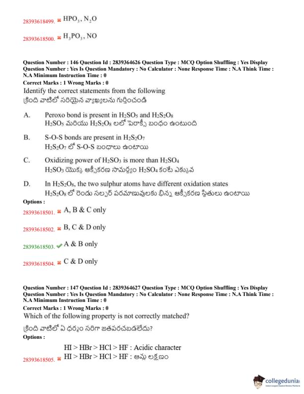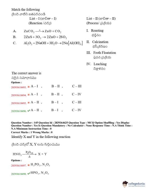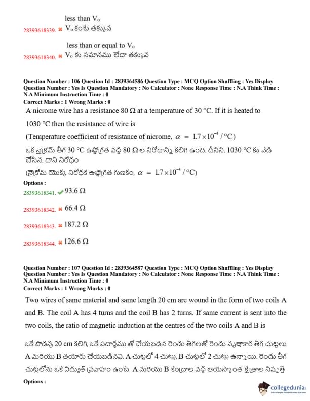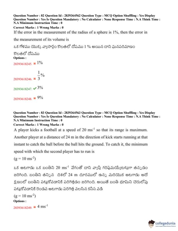 TS EAMCET 2023 Question Paper with Answer Key May 11 Shift 2 PDF