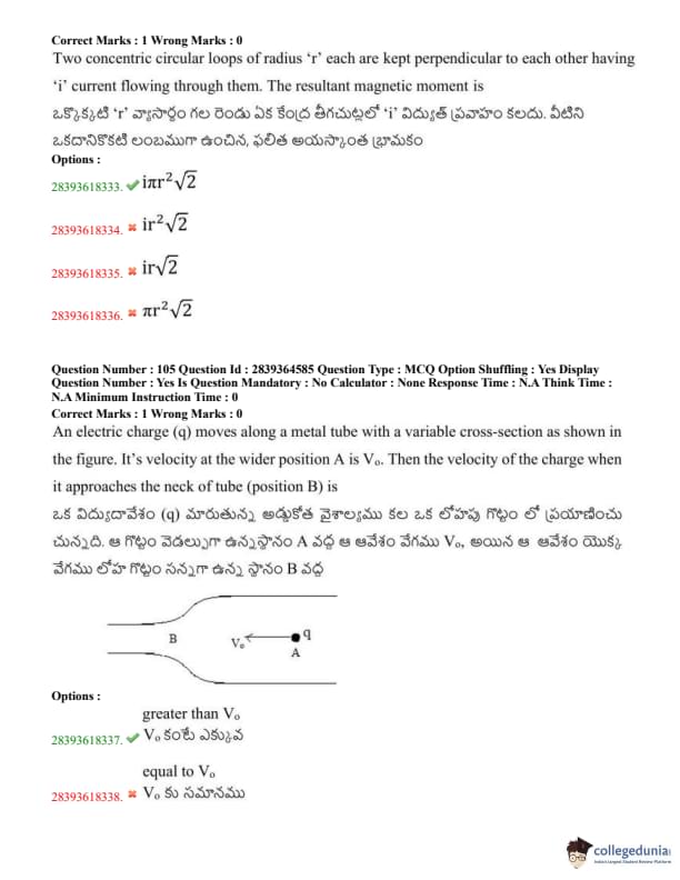 | TS EAMCET 2018 Question Paper | TS EAMCET 2017 Question Paper |