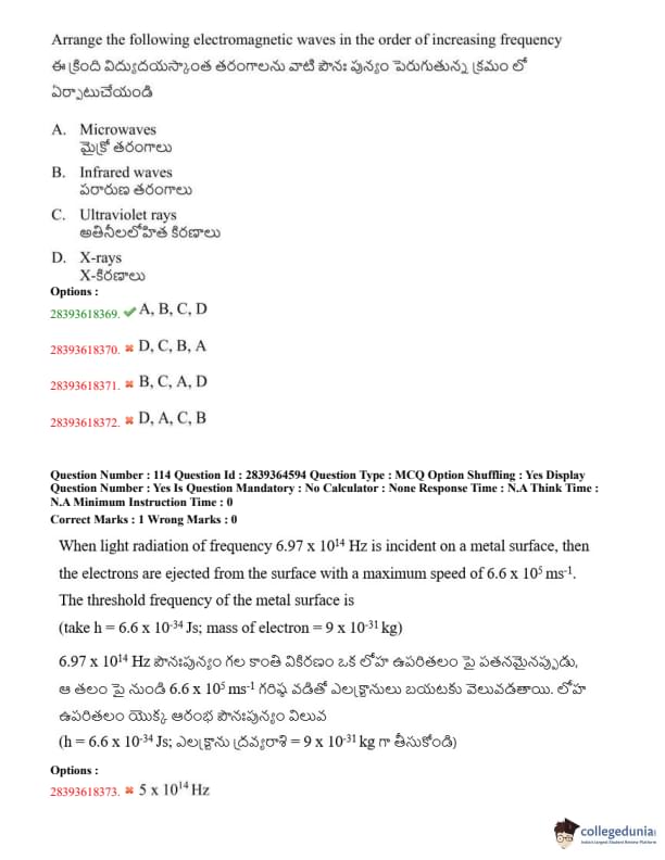 | TS EAMCET 2022 Question Paper | TS EAMCET 2021 Question Paper |