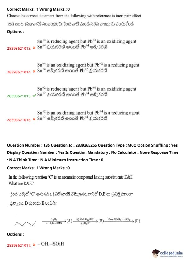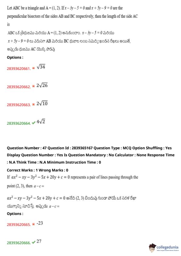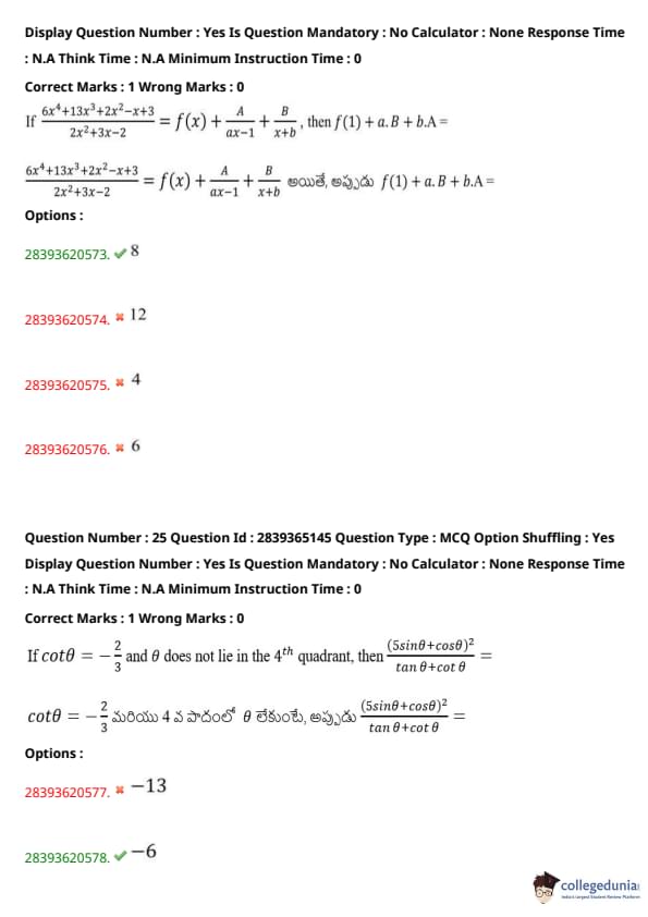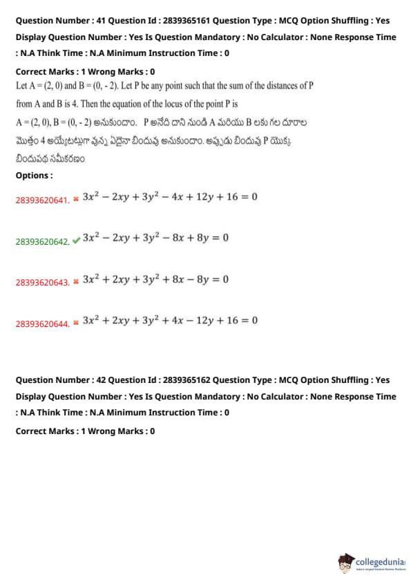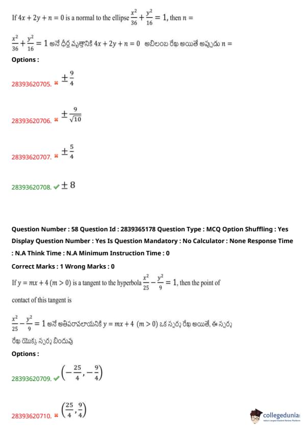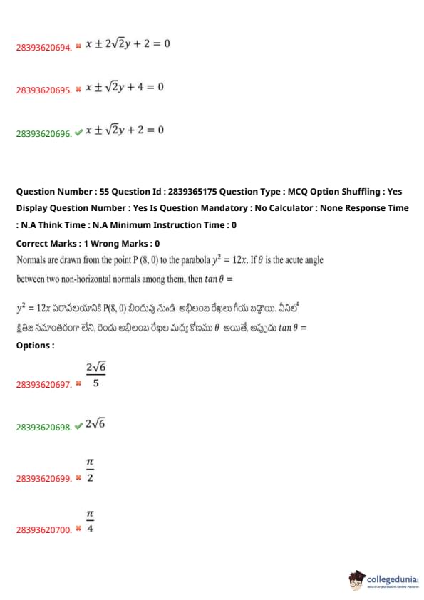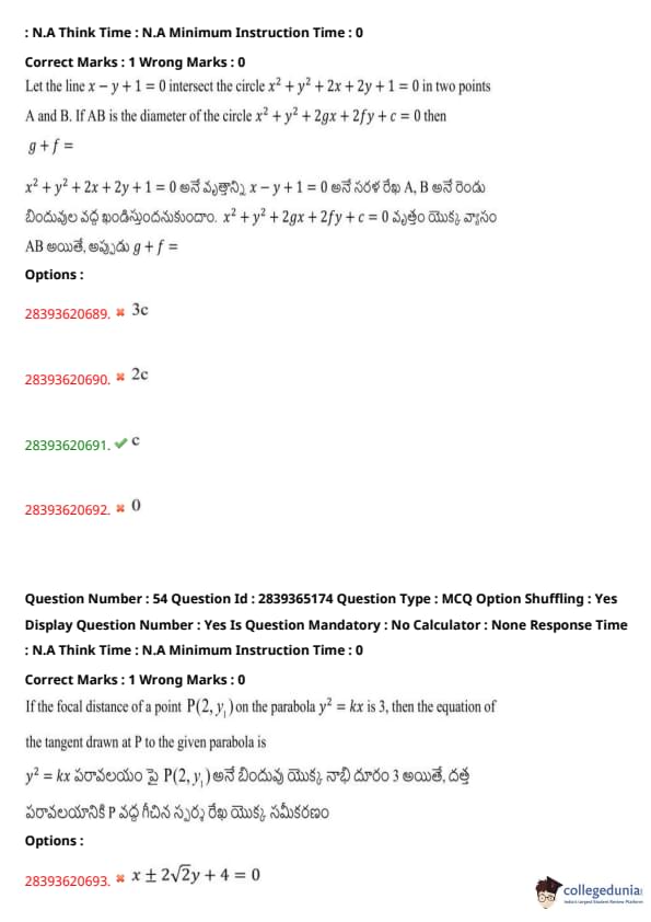 | TS EAMCET 2020 Question Paper | TS EAMCET 2019 Question Paper |