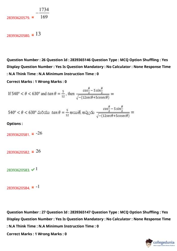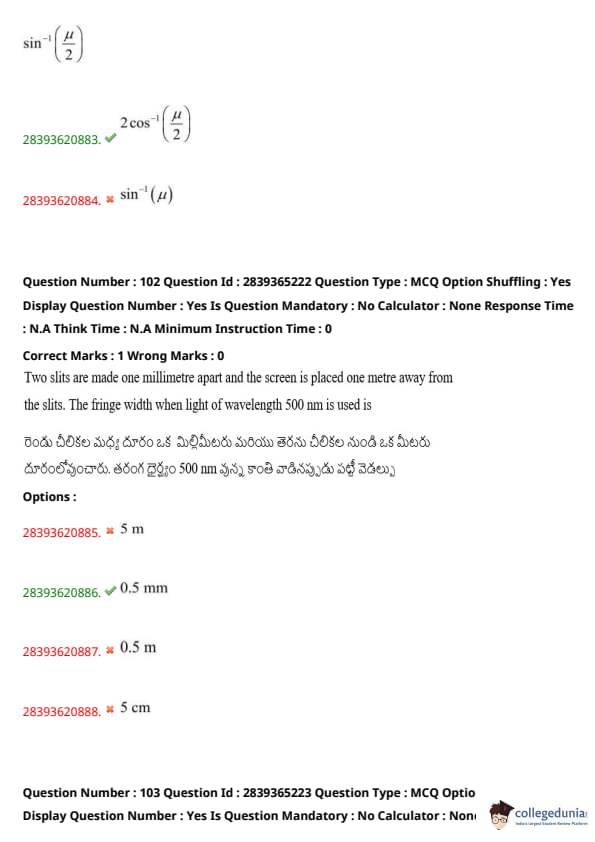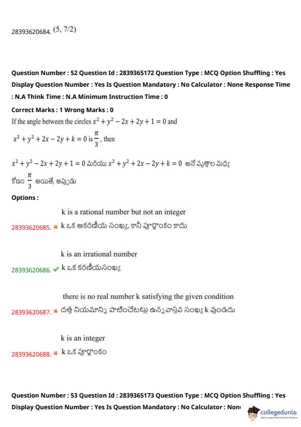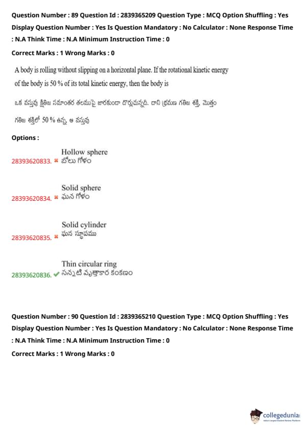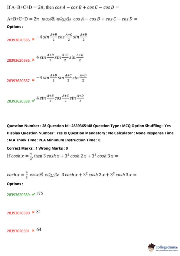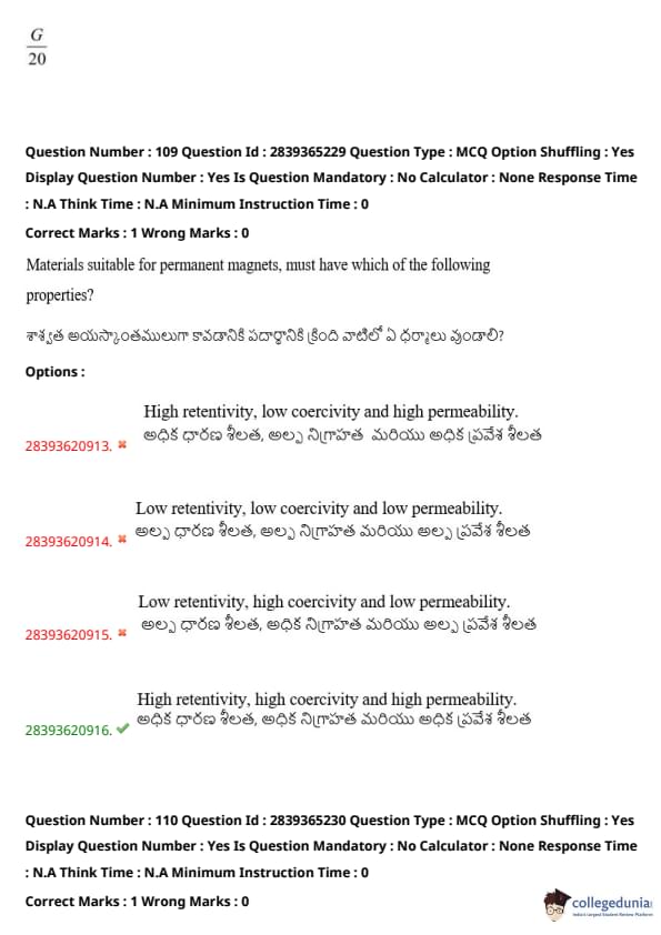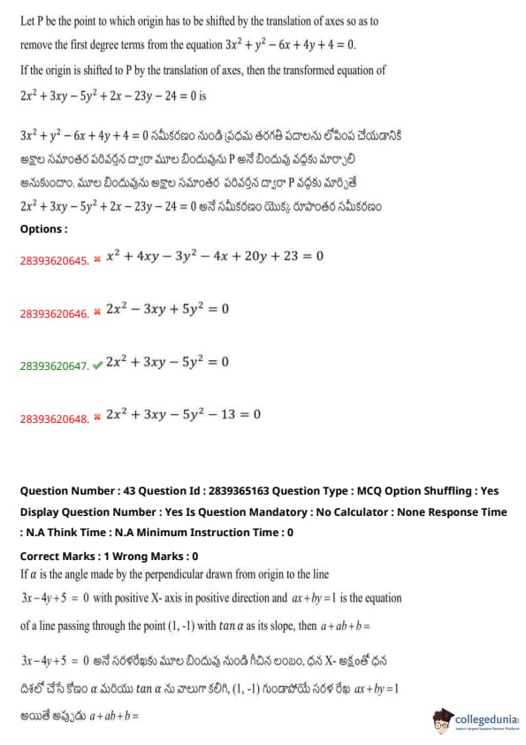 | TS EAMCET 2020 Question Paper | TS EAMCET 2019 Question Paper |