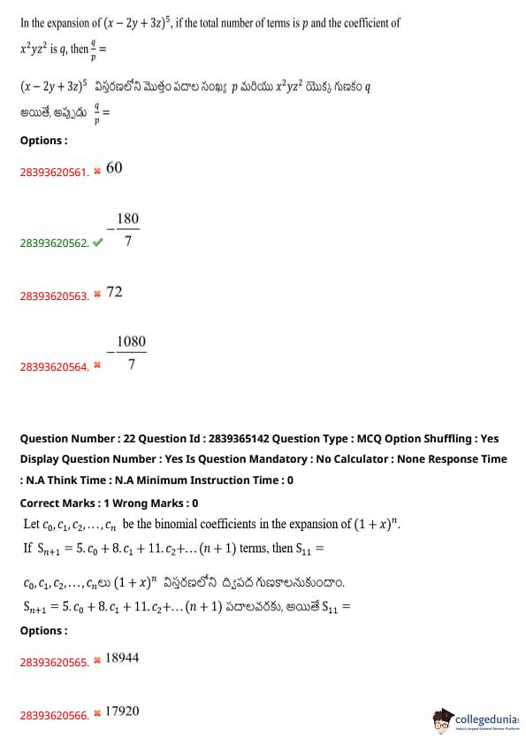 | TS EAMCET 2022 Question Paper | TS EAMCET 2021 Question Paper |