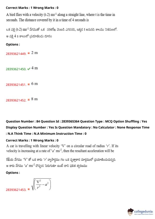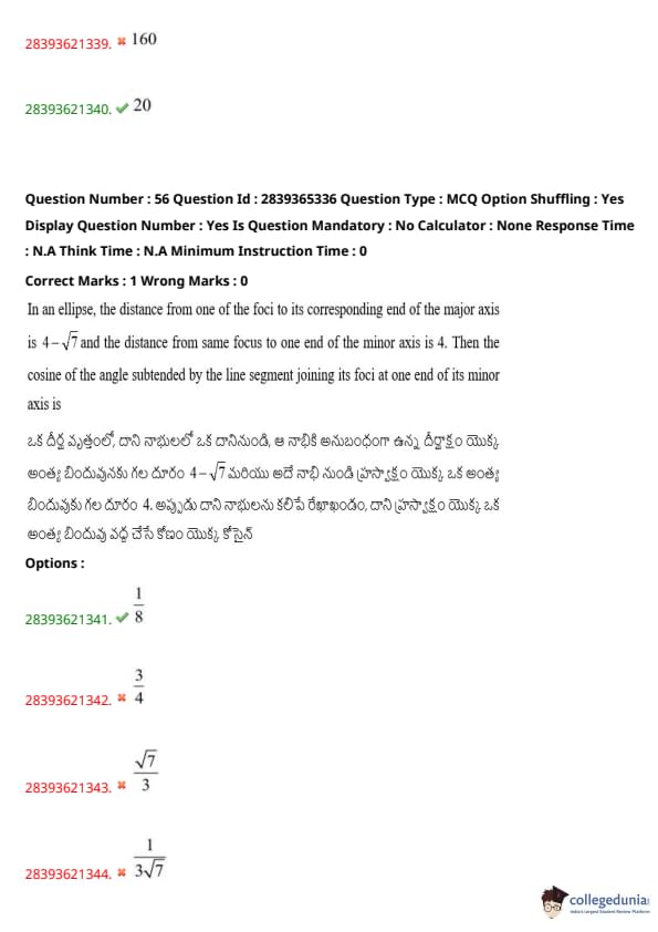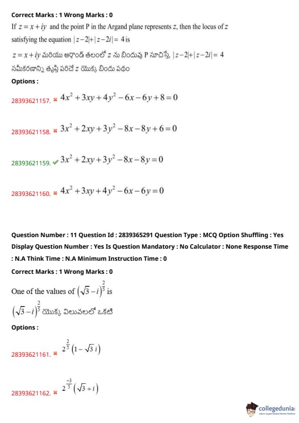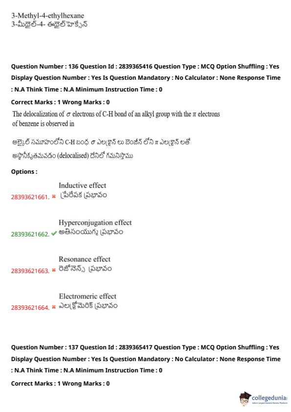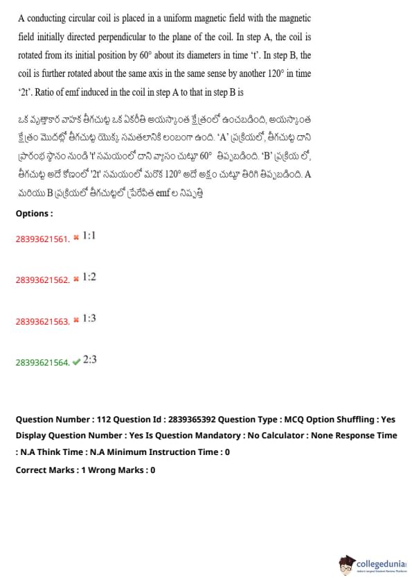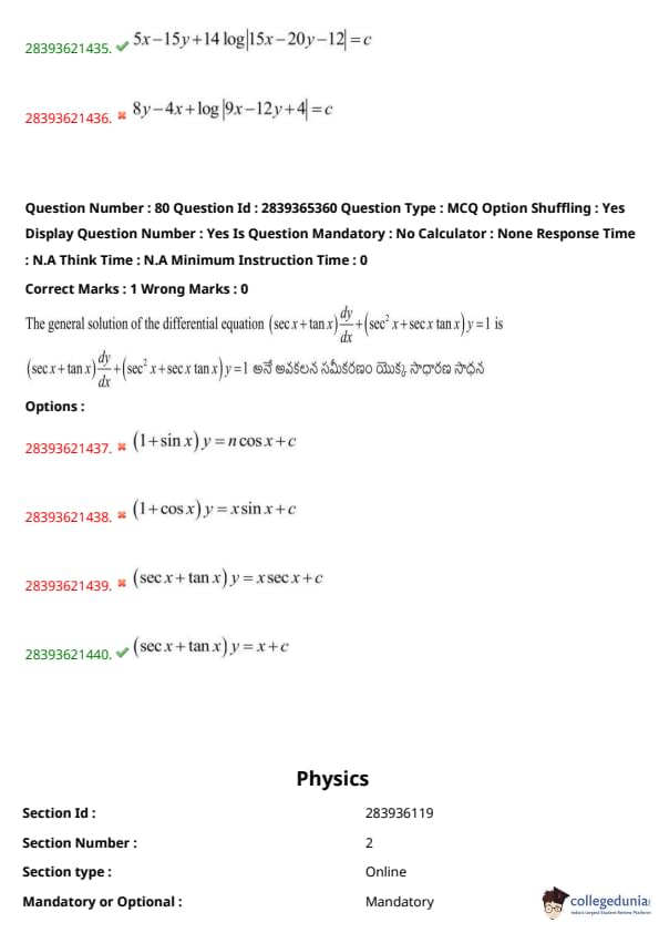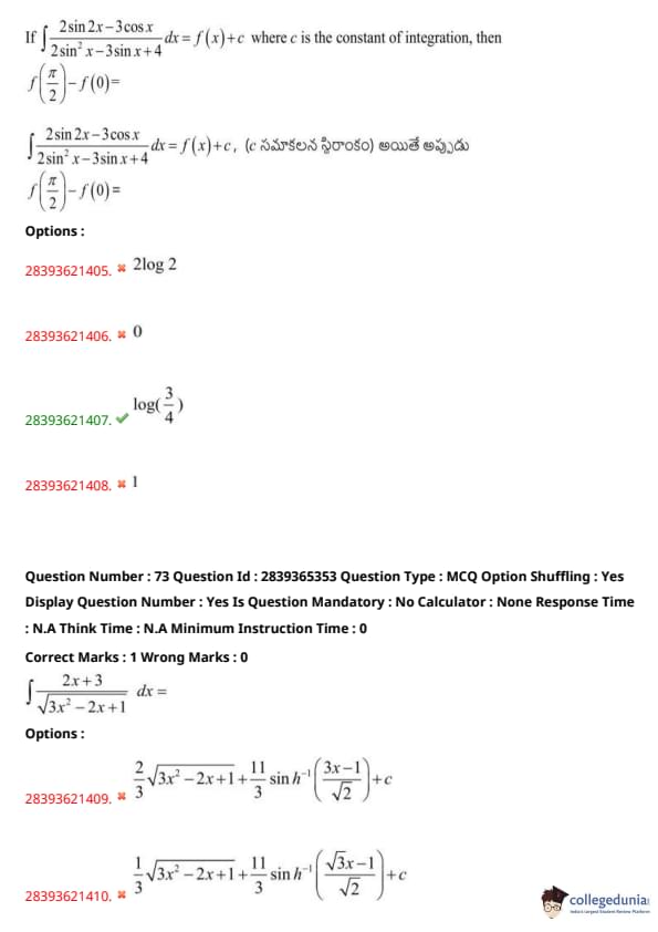 TS EAMCET 2023 Question Paper May 13 Shift 2 PDF is available here for download. TS EAMCET 2023 Question Paper consists of 160 questions carrying 1 mark each. TS EAMCET 2023 Question Paper May 13 Shift 2 PDF for MPC includes three subjects, Physics, Chemistry and Mathematics. The Physics and Chemistry section of the paper includes 40 questions each while the Mathematics section includes a total of 80 questions.