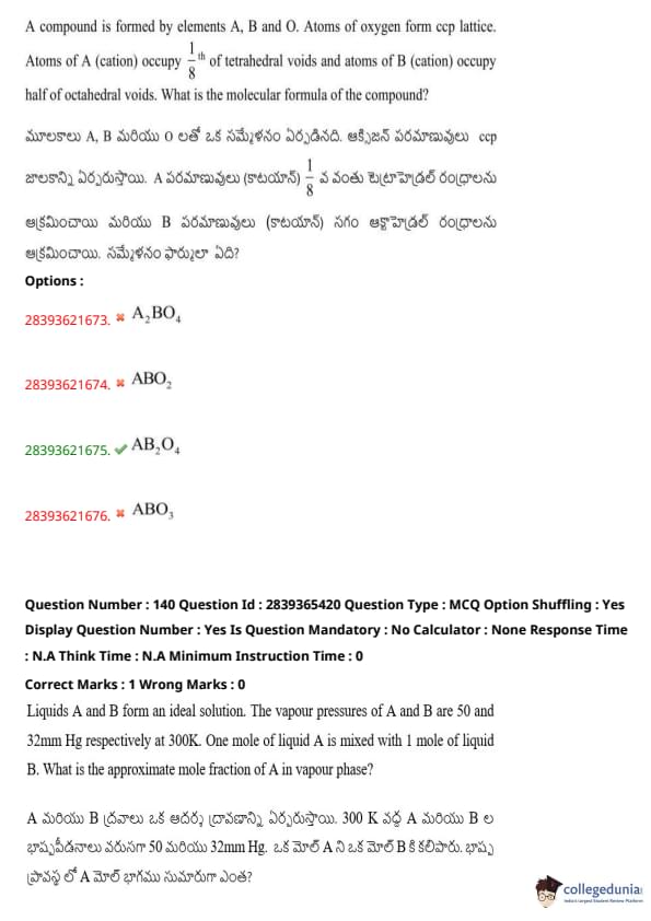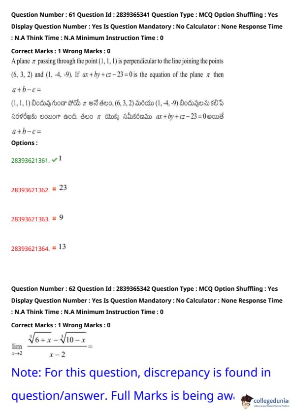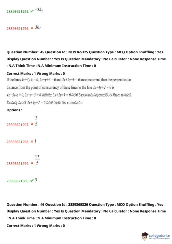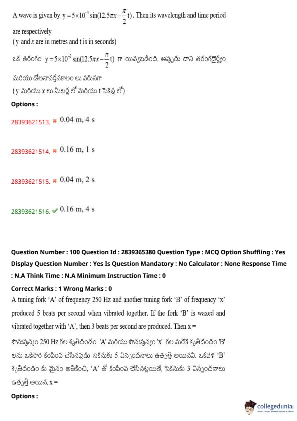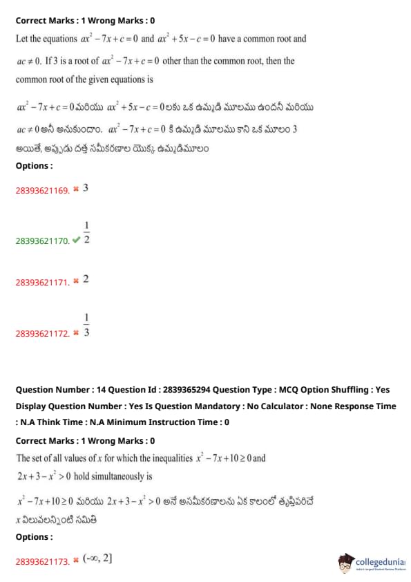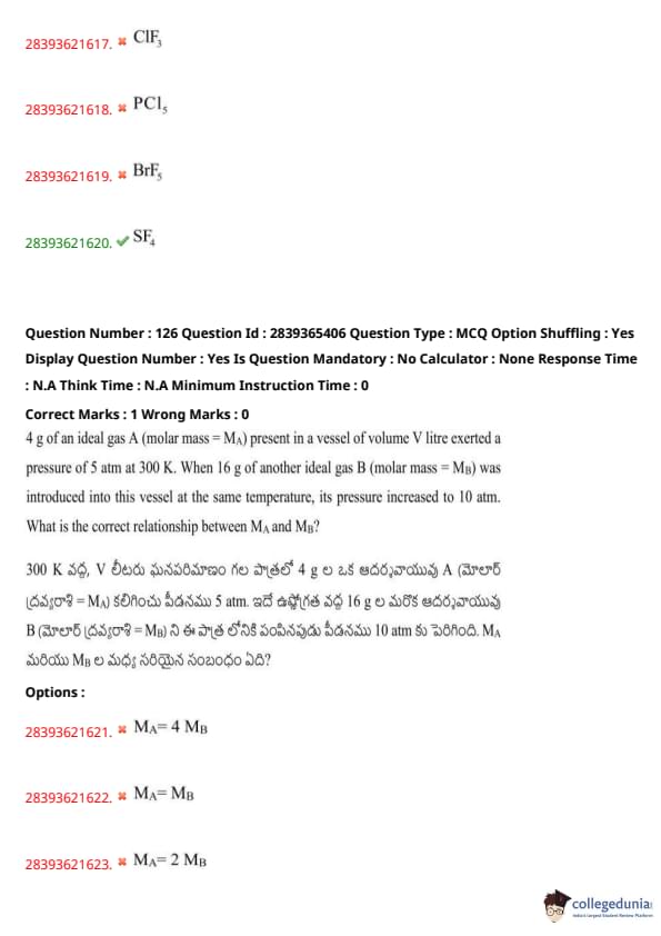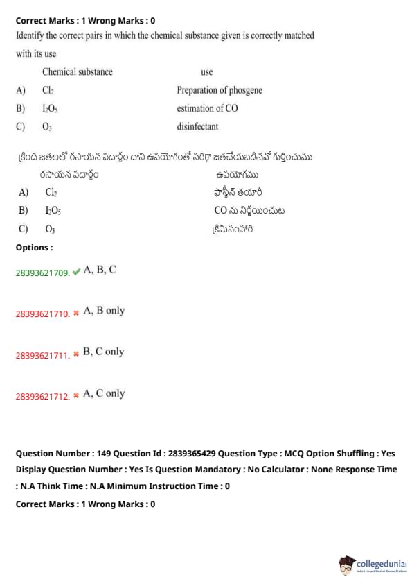 TS EAMCET 2023 Question Paper May 13 Shift 2 PDF is available here for download. TS EAMCET 2023 Question Paper consists of 160 questions carrying 1 mark each. TS EAMCET 2023 Question Paper May 13 Shift 2 PDF for MPC includes three subjects, Physics, Chemistry and Mathematics. The Physics and Chemistry section of the paper includes 40 questions each while the Mathematics section includes a total of 80 questions.