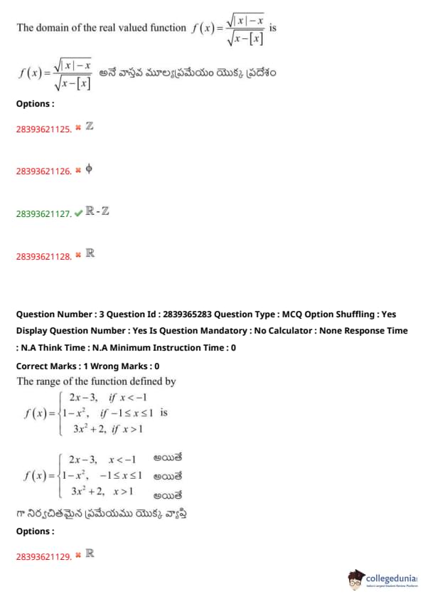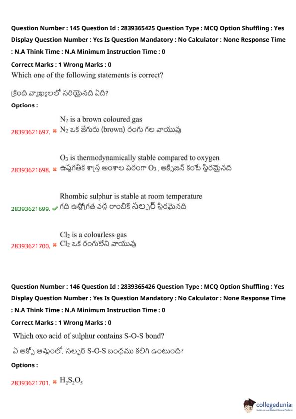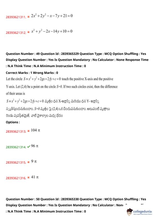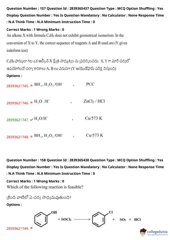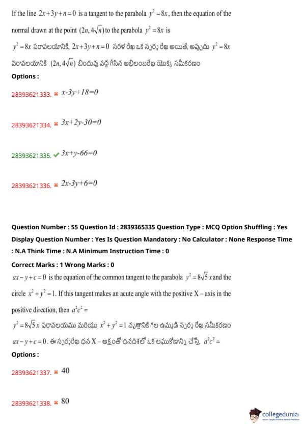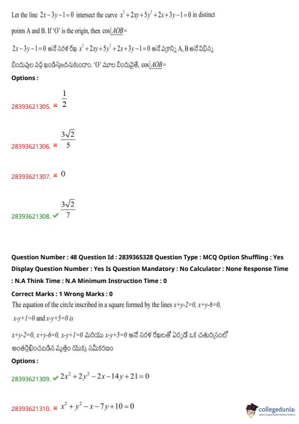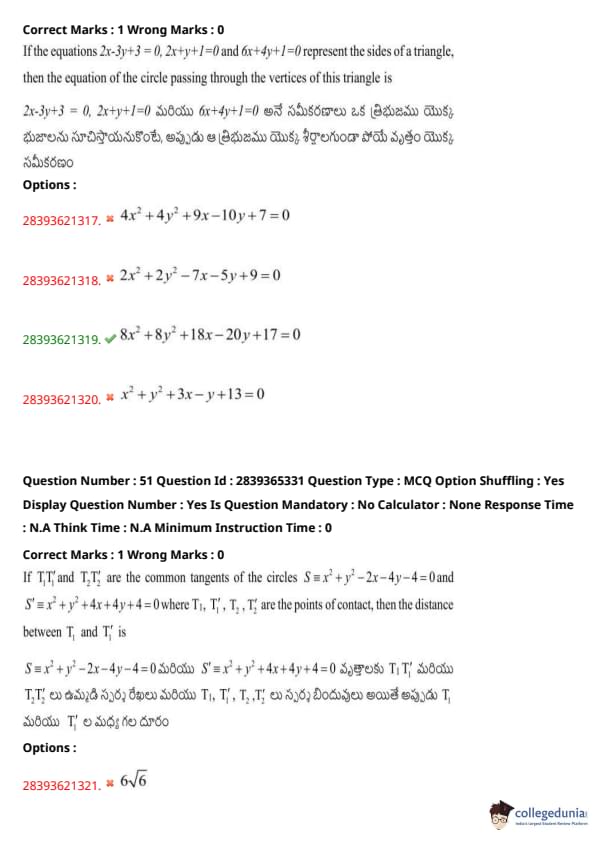 | TS EAMCET 2020 Question Paper | TS EAMCET 2019 Question Paper |