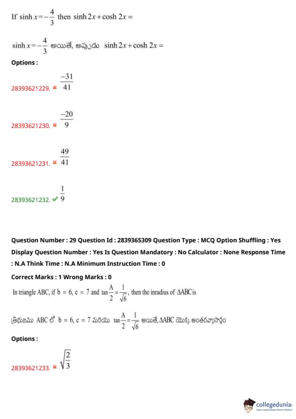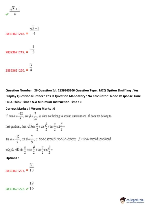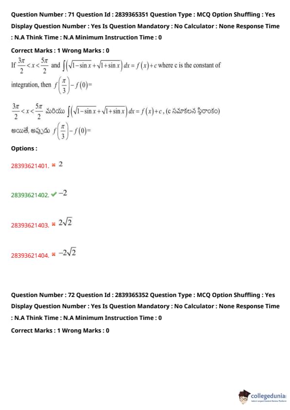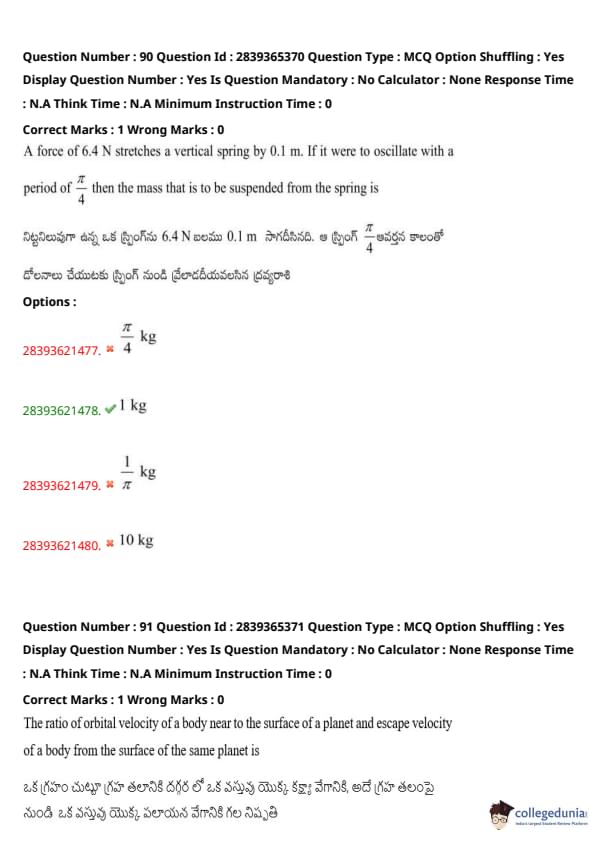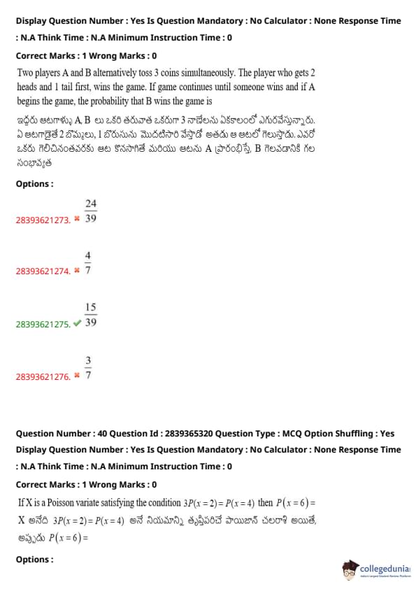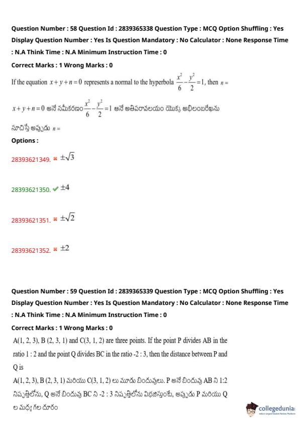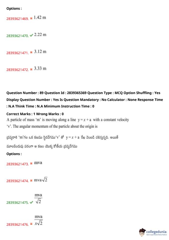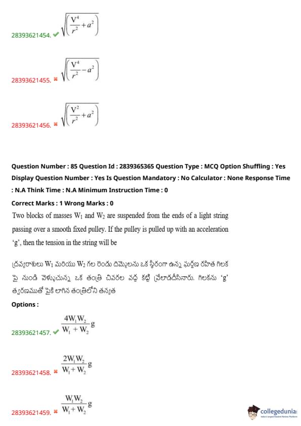 | TS EAMCET 2020 Question Paper | TS EAMCET 2019 Question Paper |