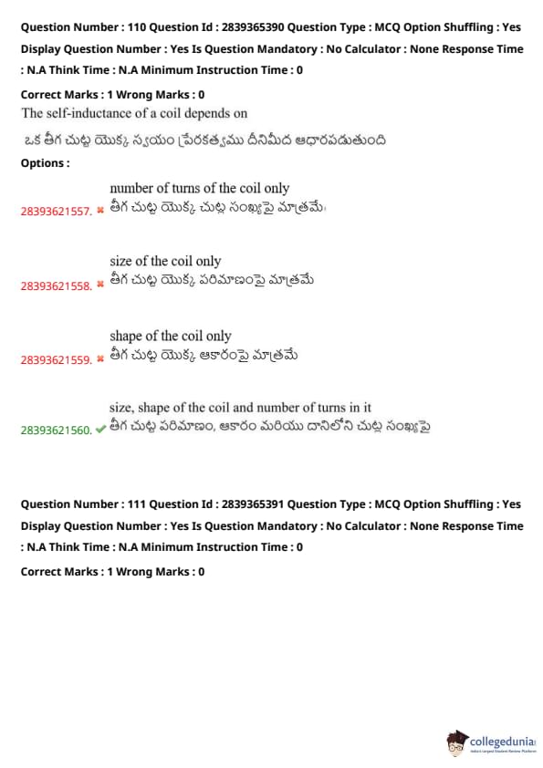| TS EAMCET 2022 Question Paper | TS EAMCET 2021 Question Paper |