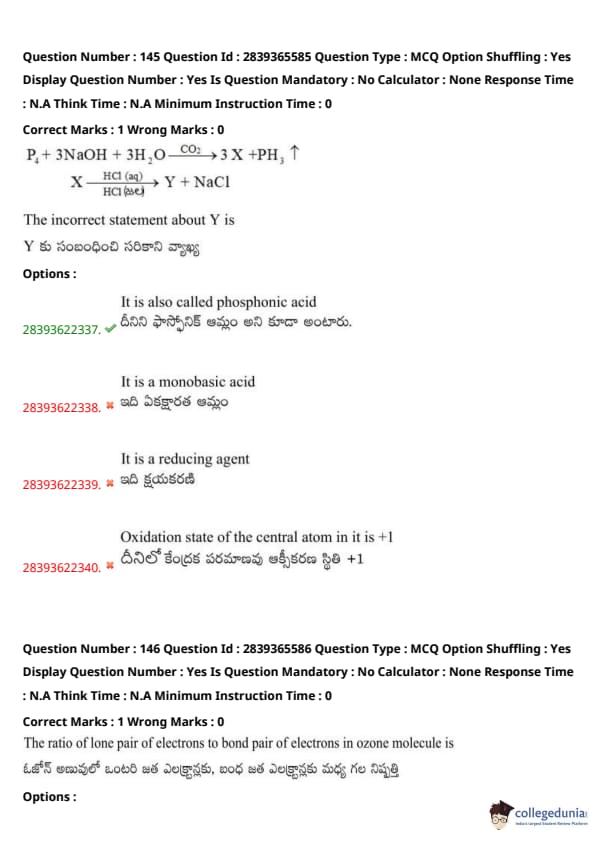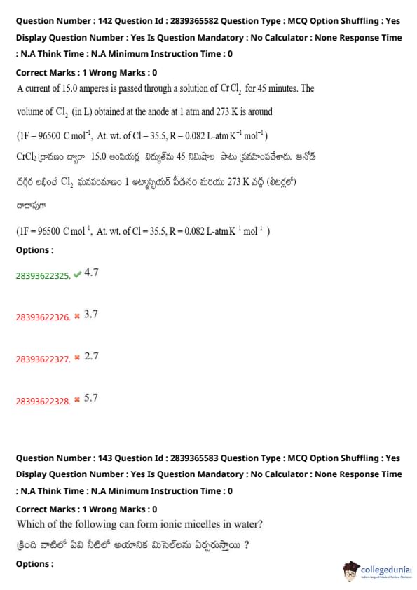 TS EAMCET 2023 Question Paper May 14 Shift 1 PDF