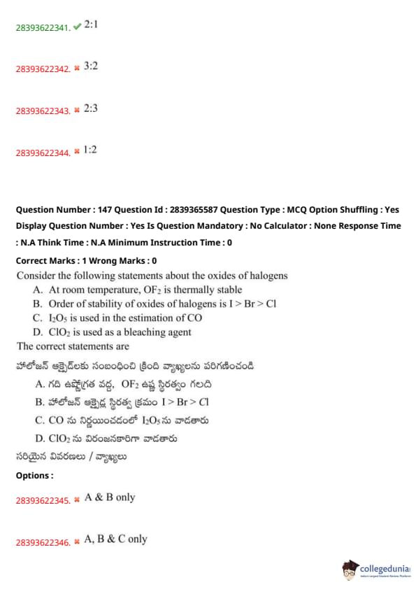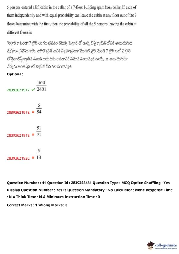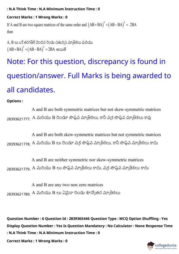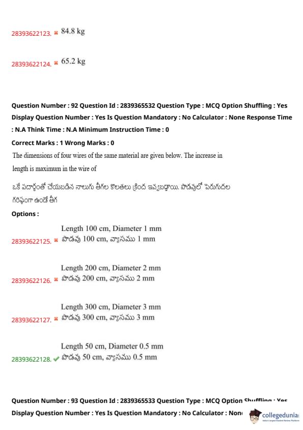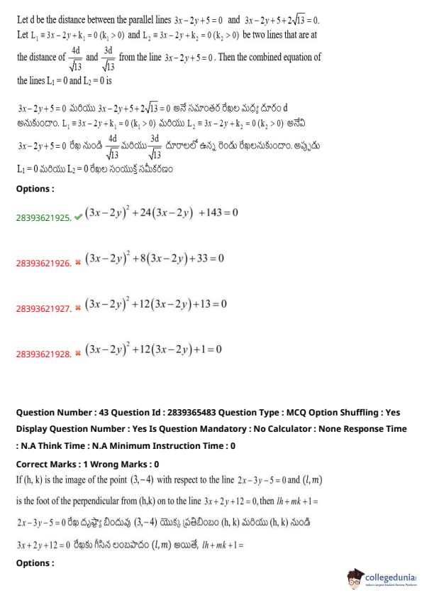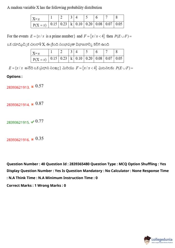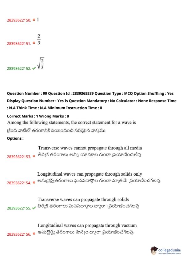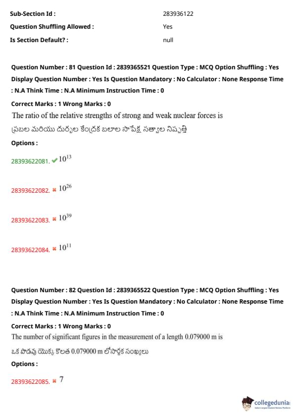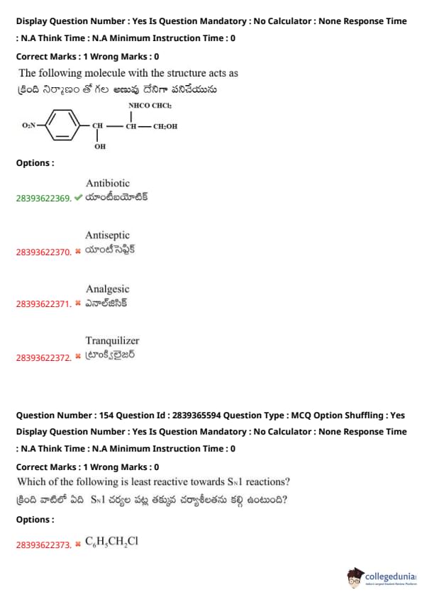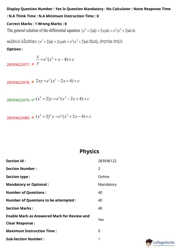 TS EAMCET 2023 Question Paper May 14 Shift 1 PDF is available here for download. TS EAMCET 2023 Question Paper consists of 160 questions carrying 1 mark each. TS EAMCET 2023 Question Paper May 14 Shift 1 PDF for MPC includes three subjects, Physics, Chemistry and Mathematics. The Physics and Chemistry section of the paper includes 40 questions each while the Mathematics section includes a total of 80 questions.