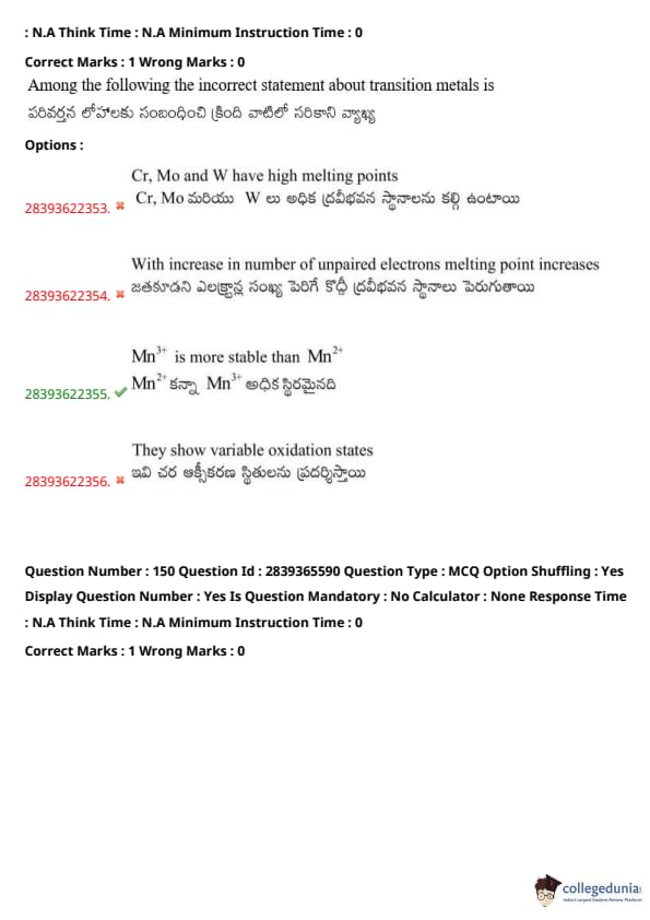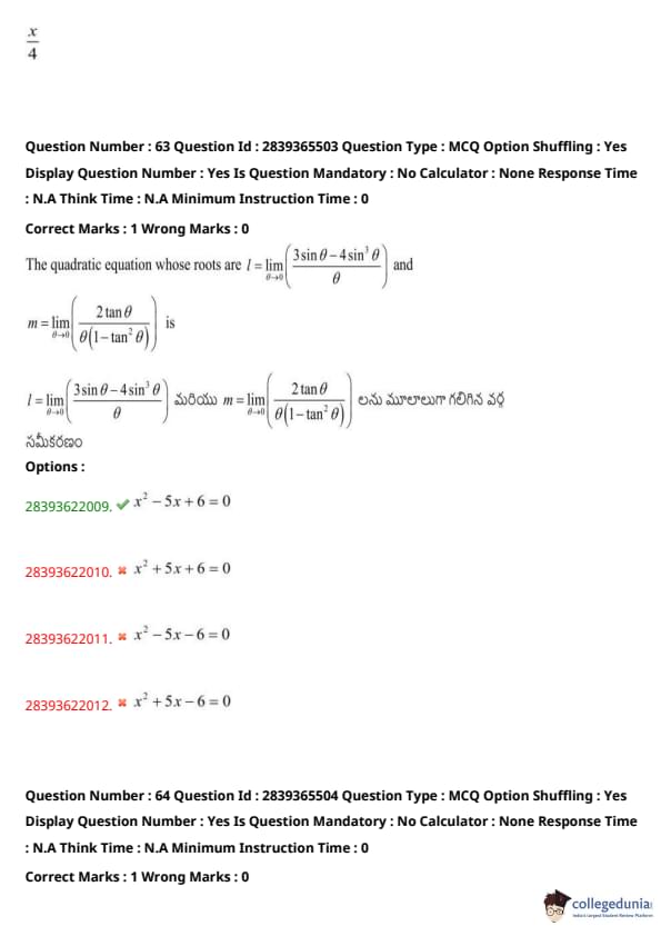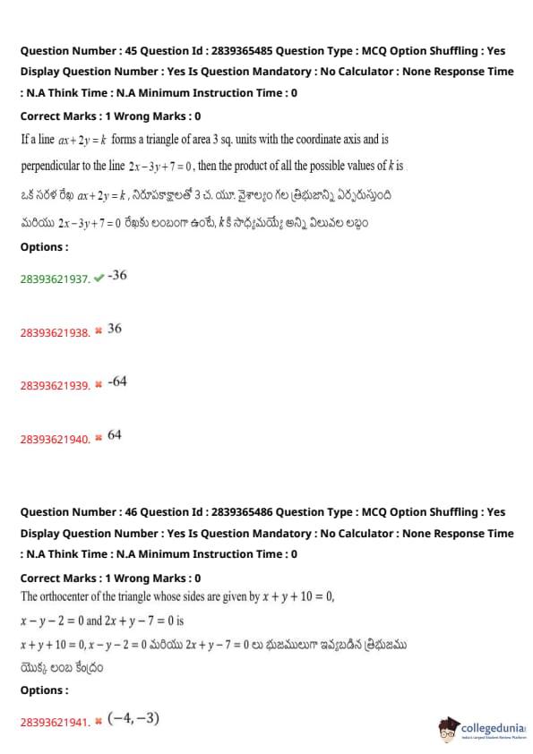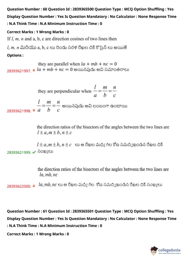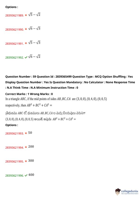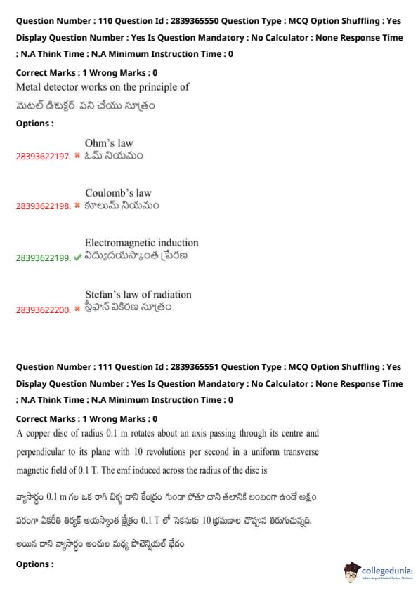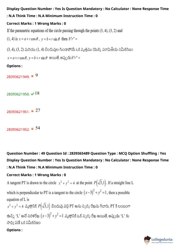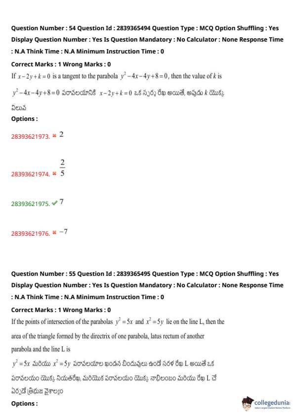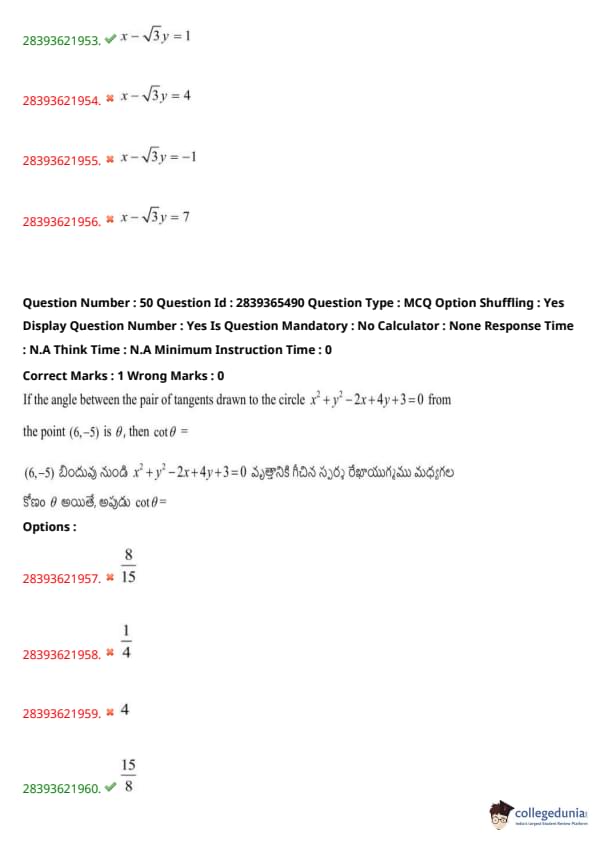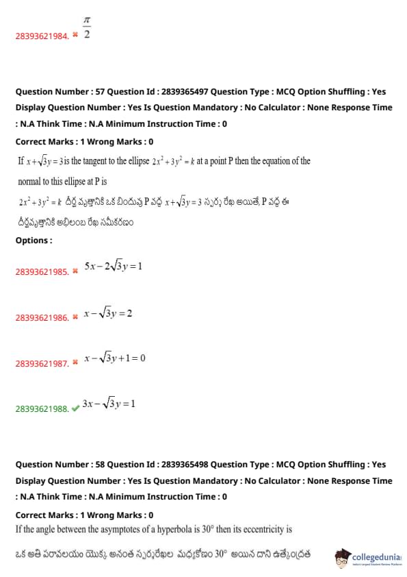 | TS EAMCET 2020 Question Paper | TS EAMCET 2019 Question Paper |
