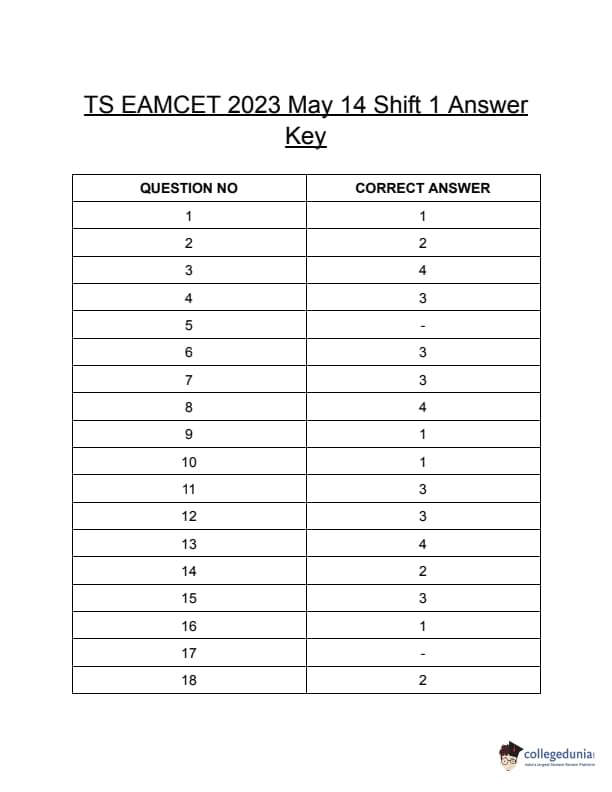 | TS EAMCET 2023 Question Paper PDF | TS EAMCET 2023 Answer Key PDF | TS EAMCET 2023 Solution PDF |