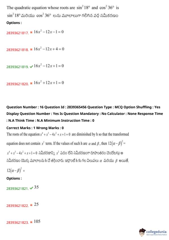| TS EAMCET 2018 Question Paper | TS EAMCET 2017 Question Paper |