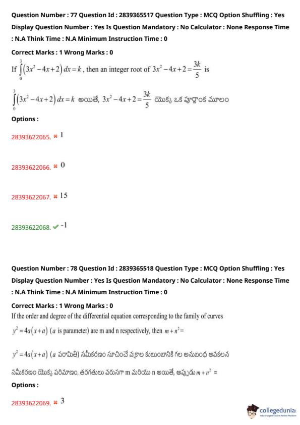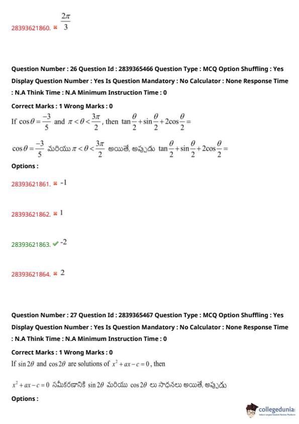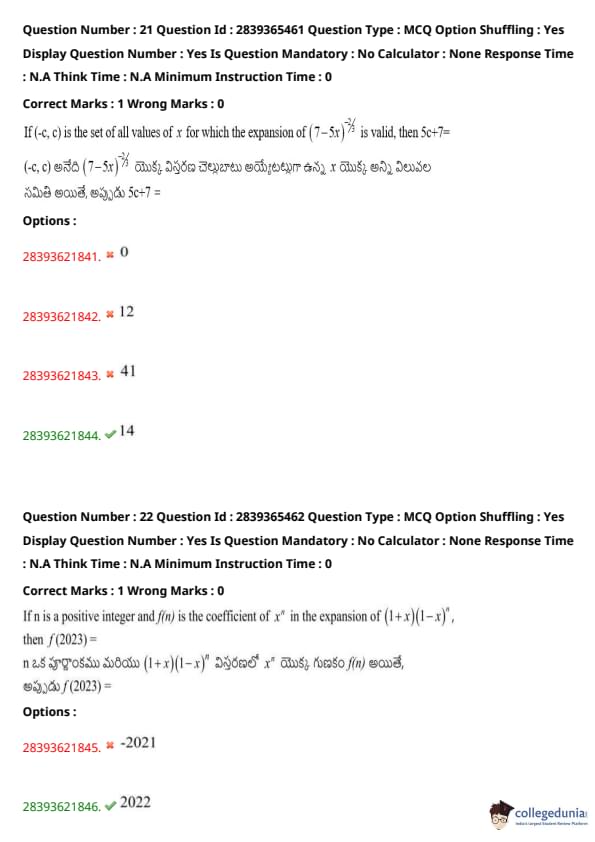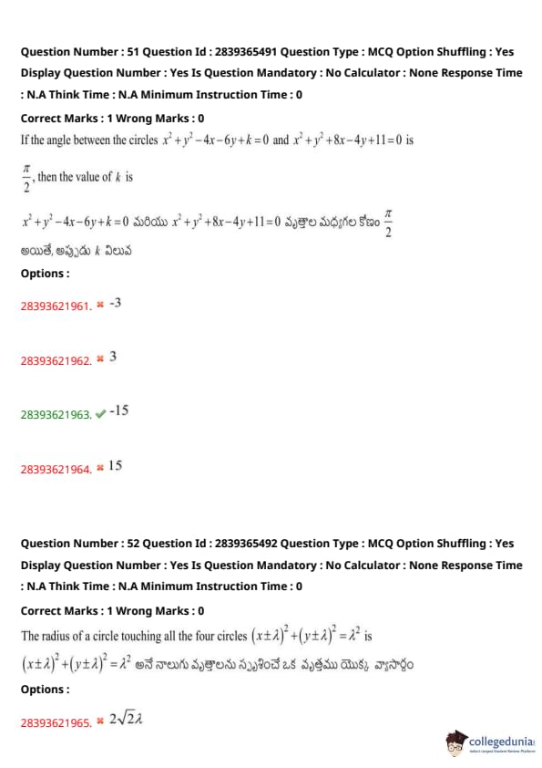 | TS EAMCET 2022 Question Paper | TS EAMCET 2021 Question Paper |