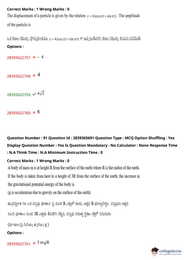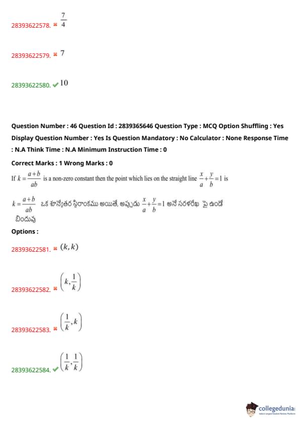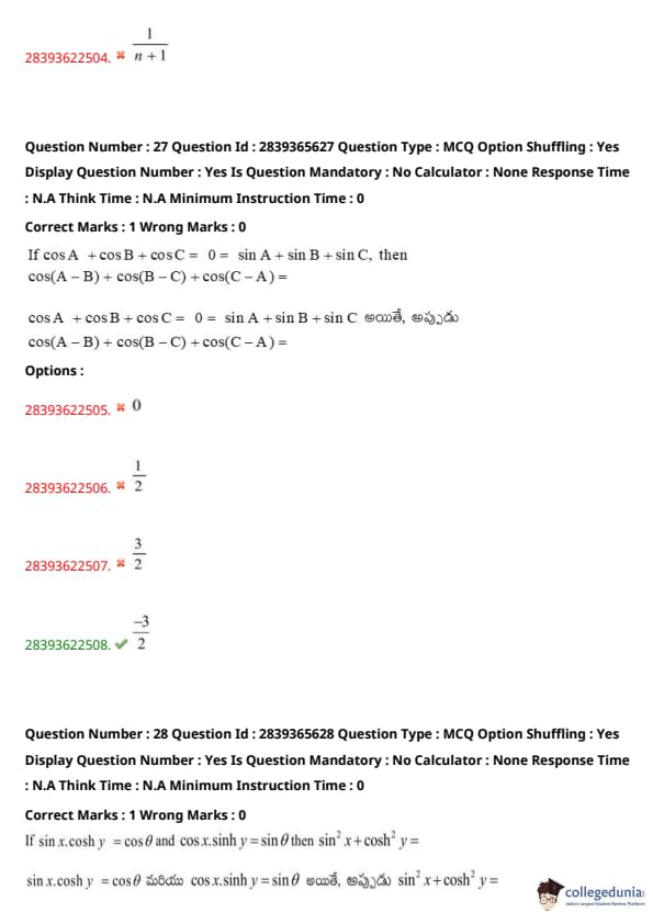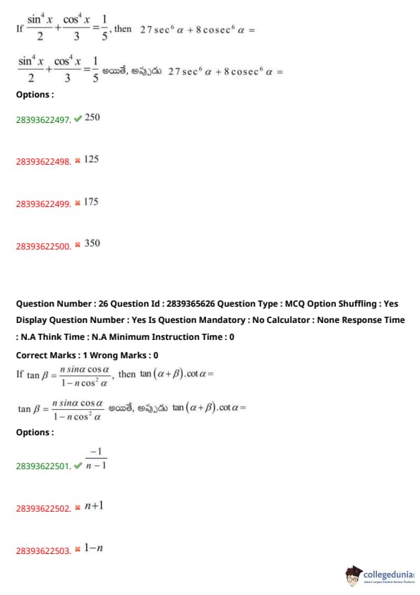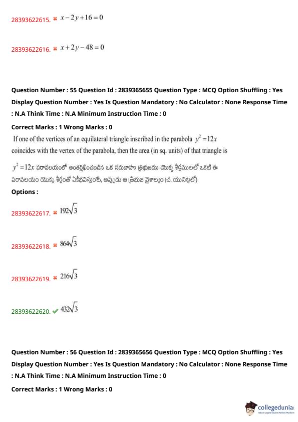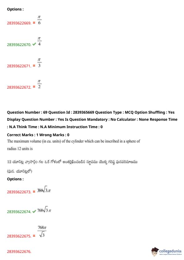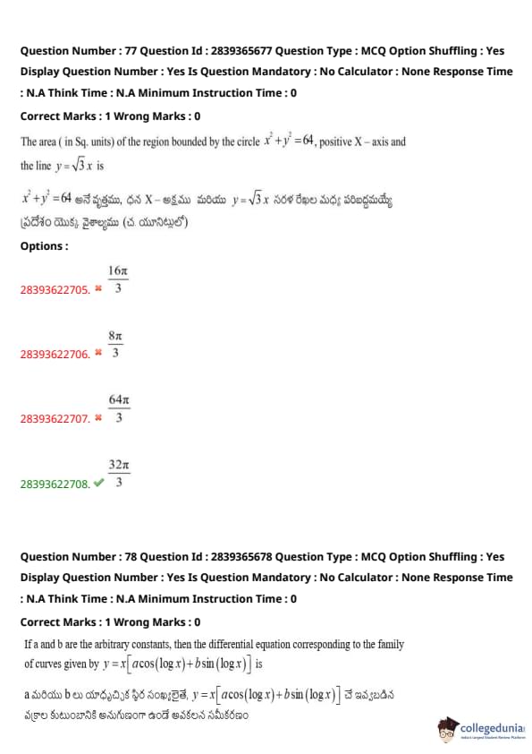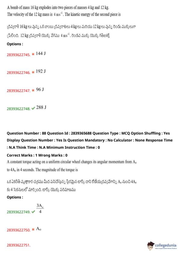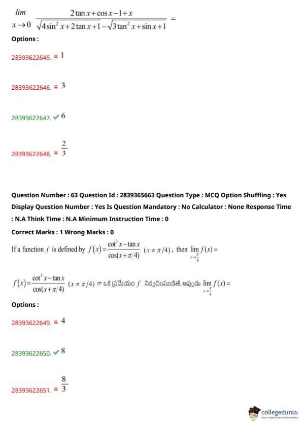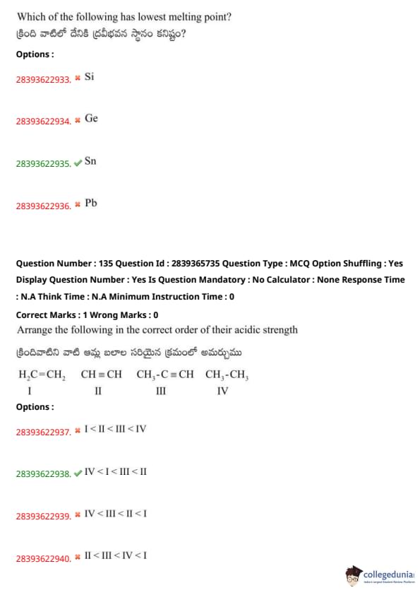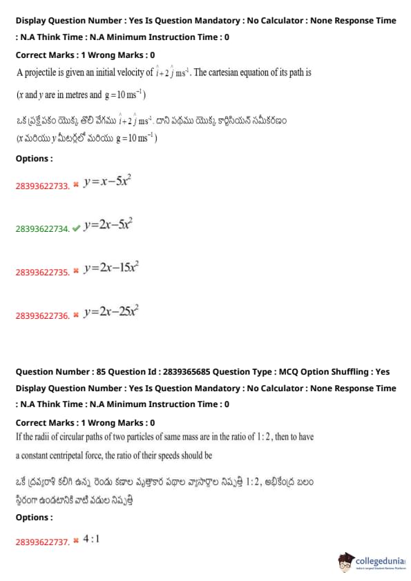 | TS EAMCET 2020 Question Paper | TS EAMCET 2019 Question Paper |