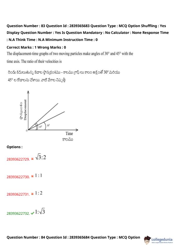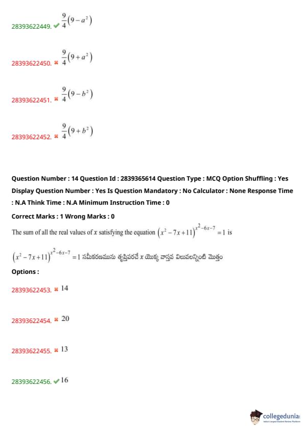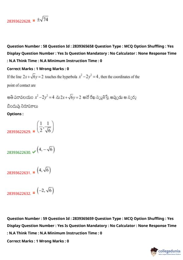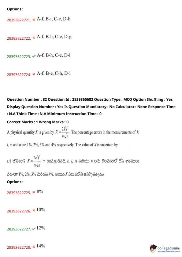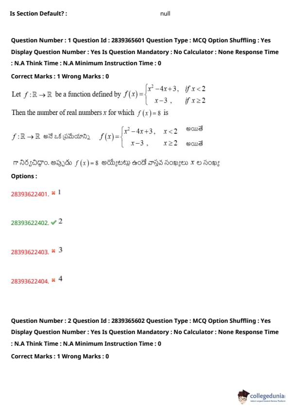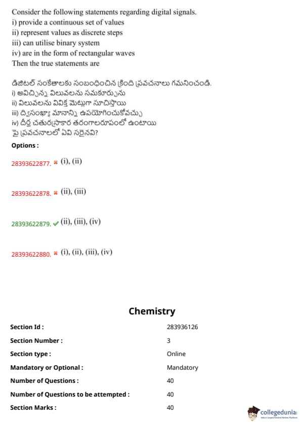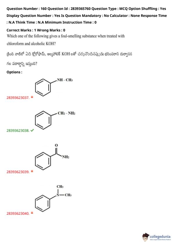 TS EAMCET 2023 Question Paper May 14 Shift 2 PDF is available here for download. TS EAMCET 2023 Question Paper consists of 160 questions carrying 1 mark each. TS EAMCET 2023 Question Paper May 14 Shift 2 PDF for MPC includes three subjects, Physics, Chemistry and Mathematics. The Physics and Chemistry section of the paper includes 40 questions each while the Mathematics section includes a total of 80 questions.