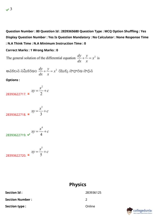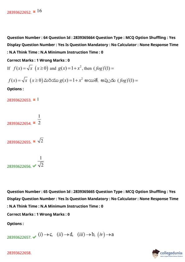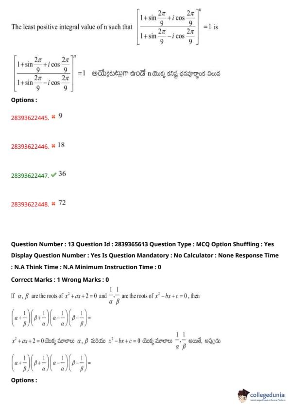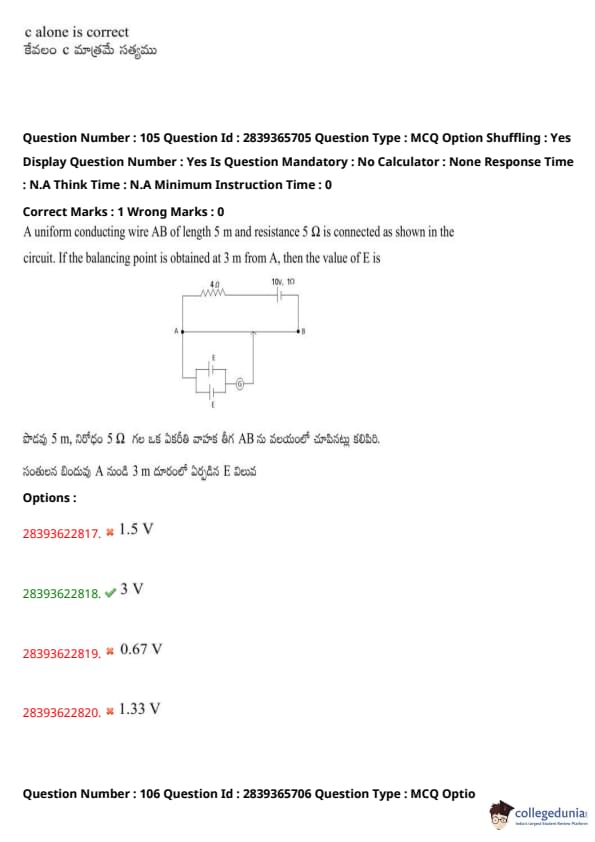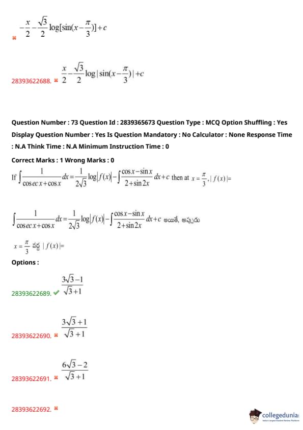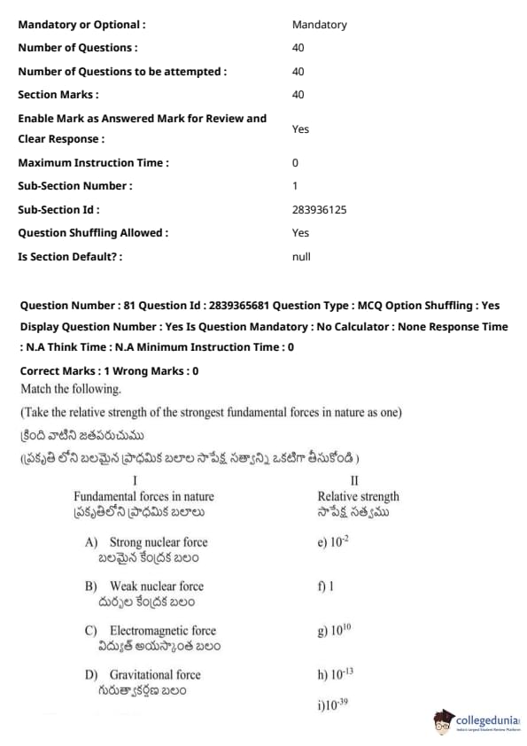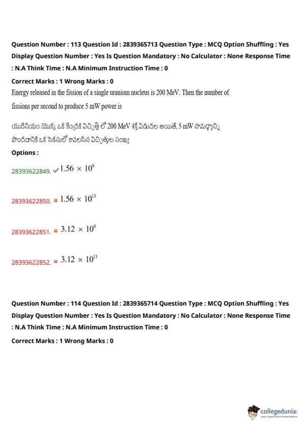 TS EAMCET 2023 Question Paper May 14 Shift 2 PDF is available here for download. TS EAMCET 2023 Question Paper consists of 160 questions carrying 1 mark each. TS EAMCET 2023 Question Paper May 14 Shift 2 PDF for MPC includes three subjects, Physics, Chemistry and Mathematics. The Physics and Chemistry section of the paper includes 40 questions each while the Mathematics section includes a total of 80 questions.
