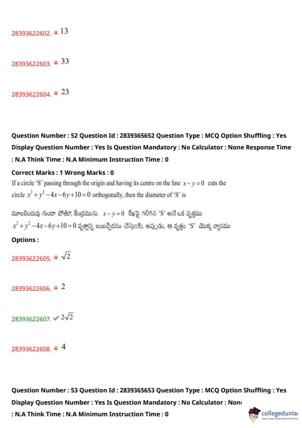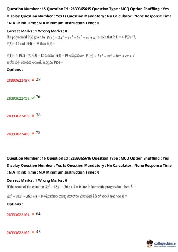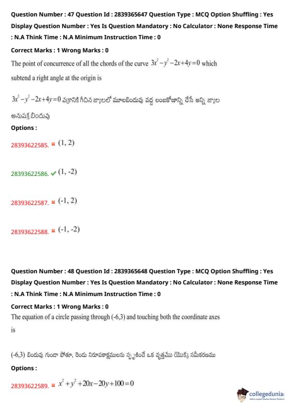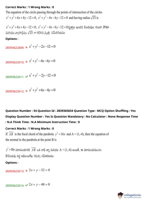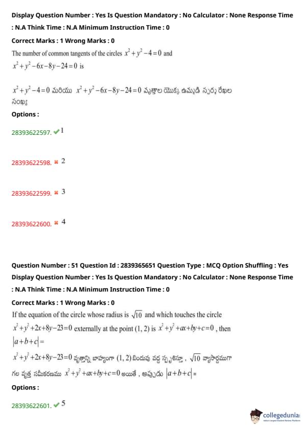 | TS EAMCET 2022 Question Paper | TS EAMCET 2021 Question Paper |