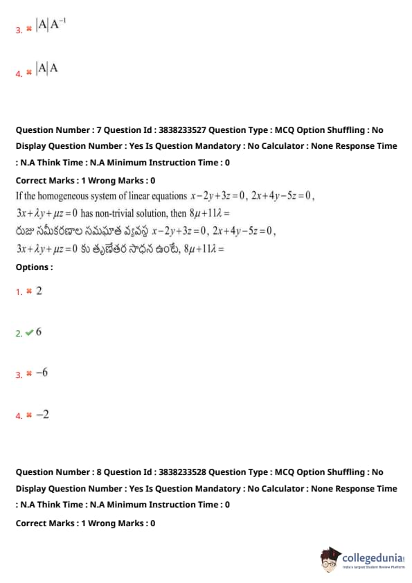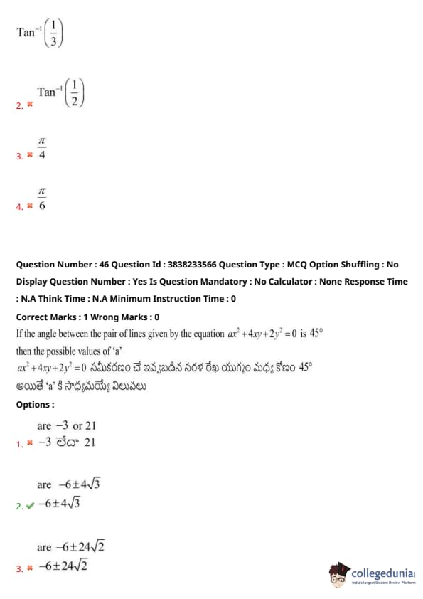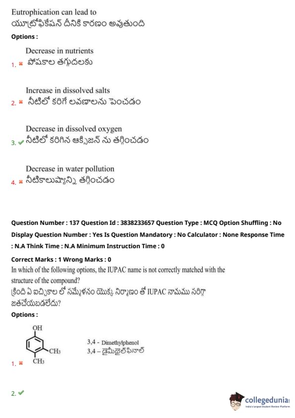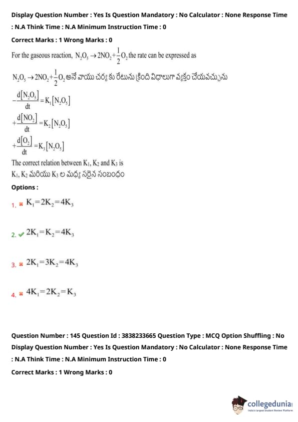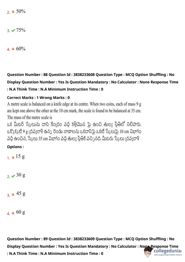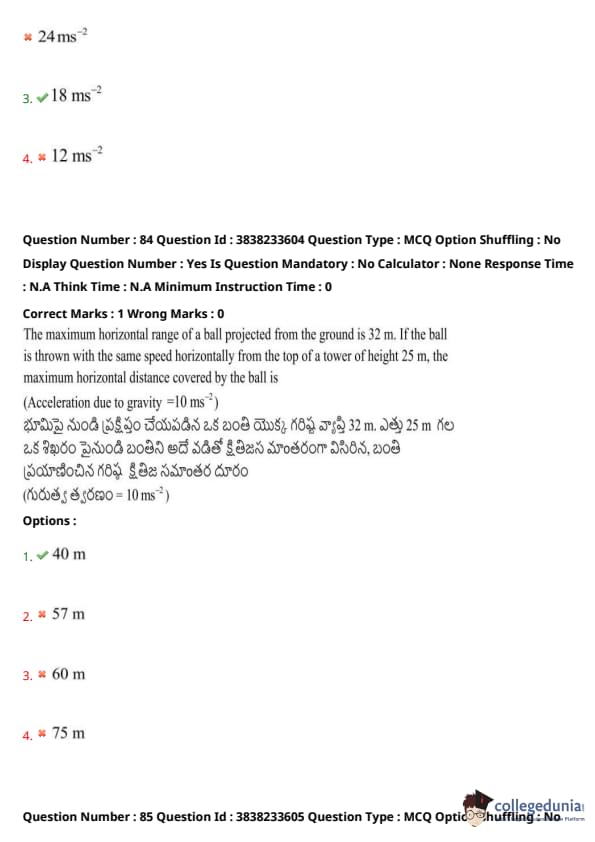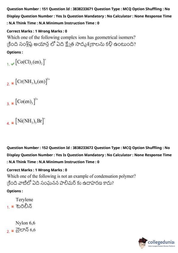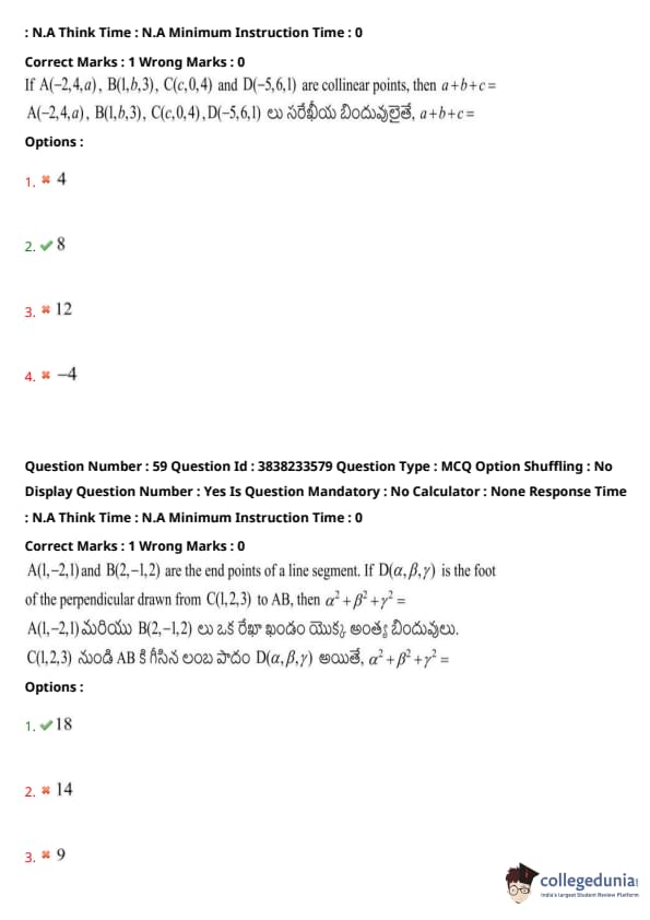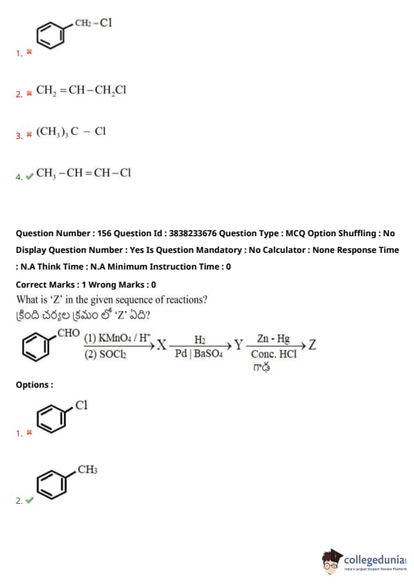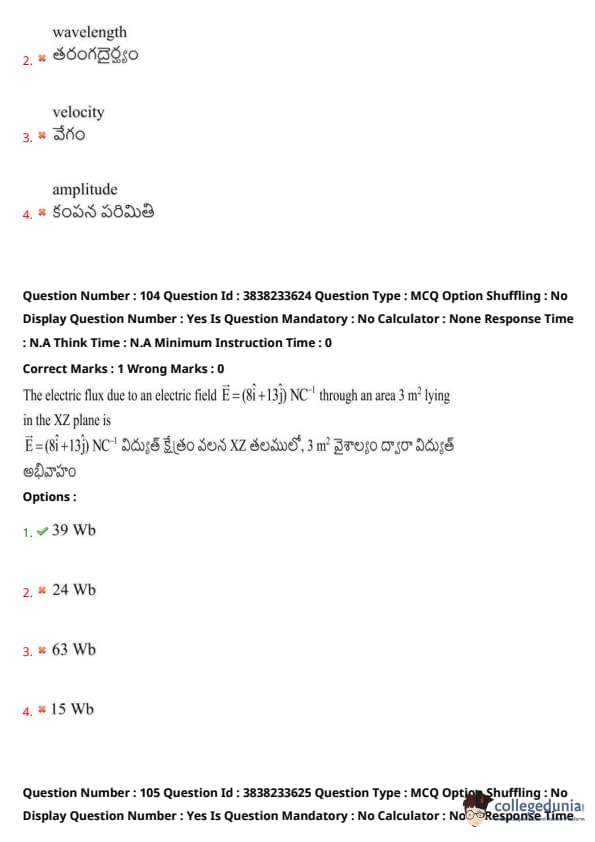 | TS EAMCET 2024 11 May Shift 1 Question Paper with Answer Key | Check Solution |
