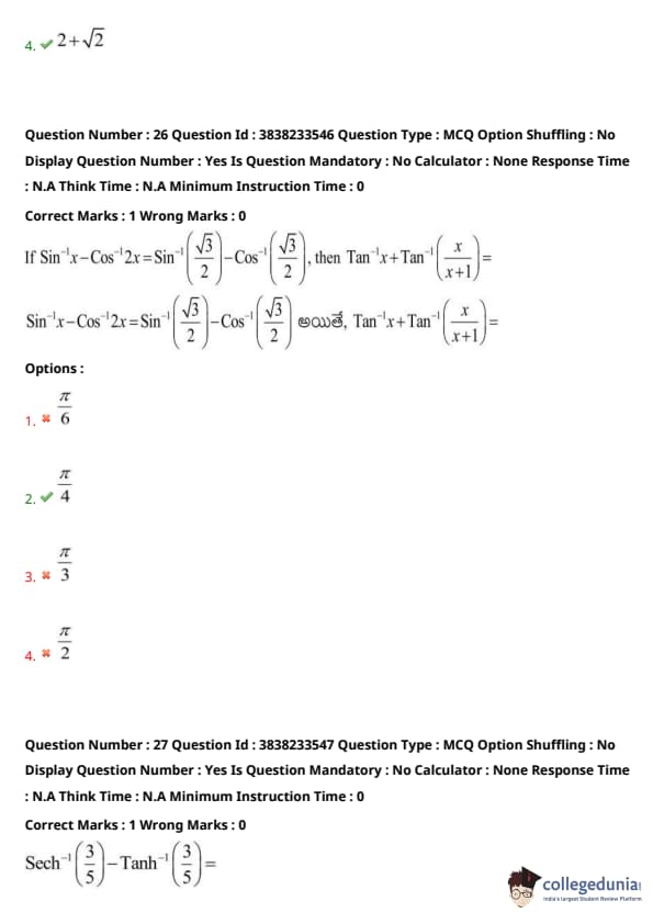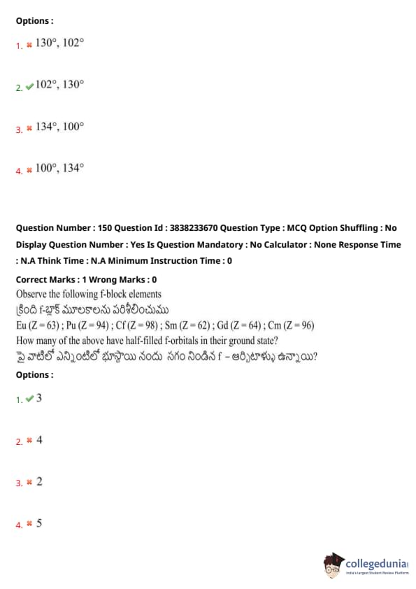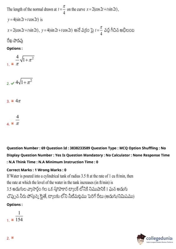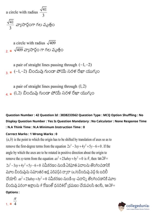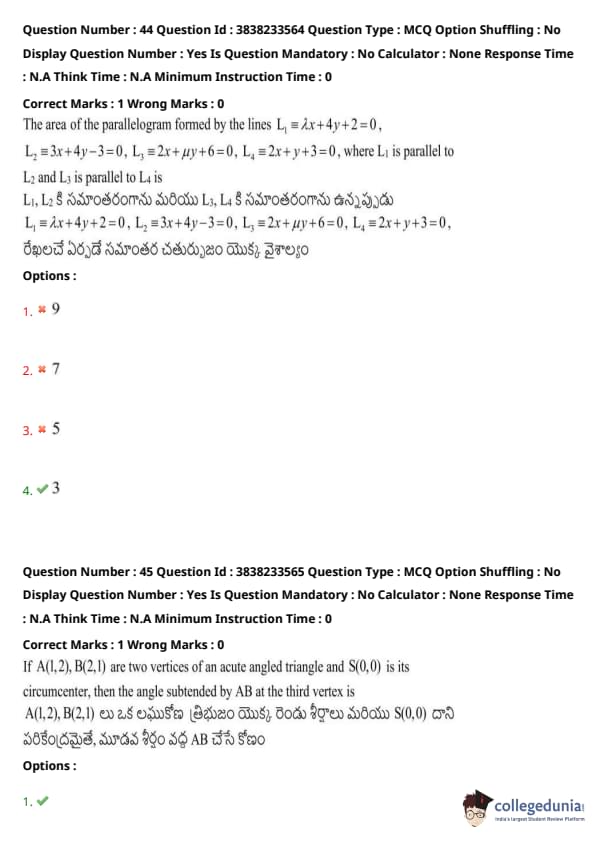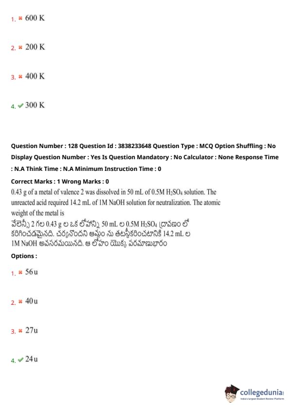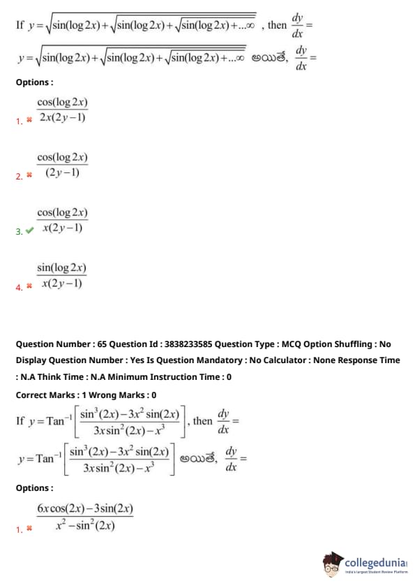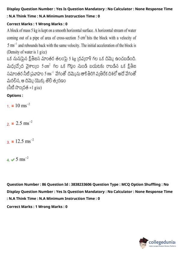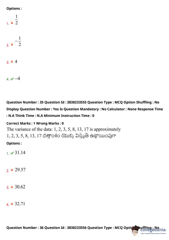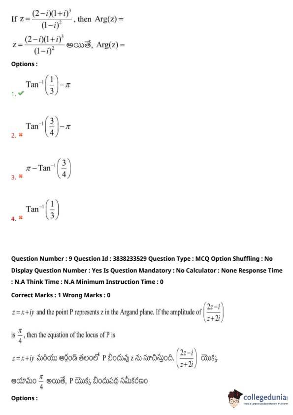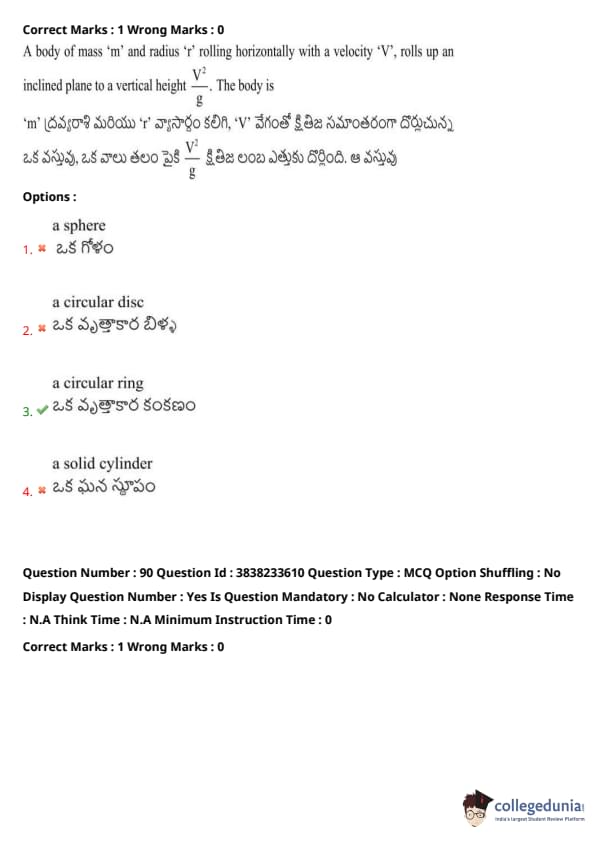 | TS EAMCET 2024 11 May Shift 1 Question Paper with Answer Key | Check Solution |