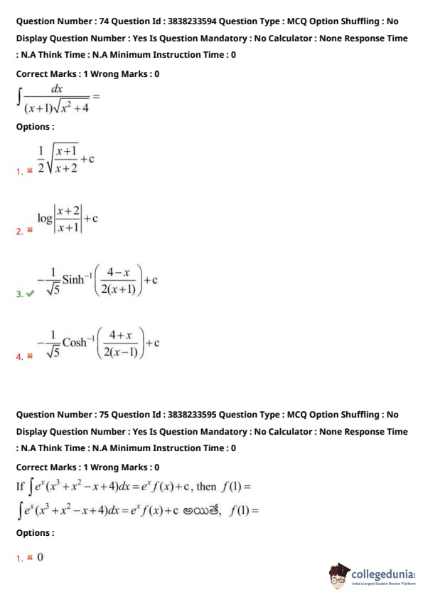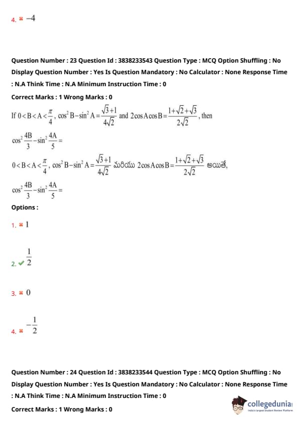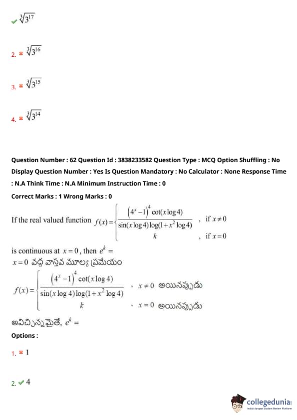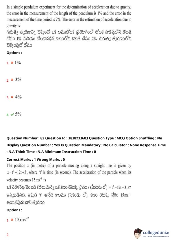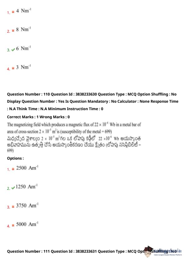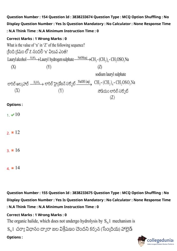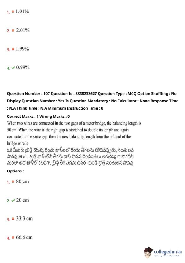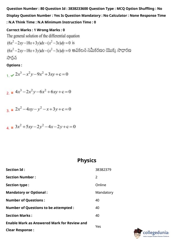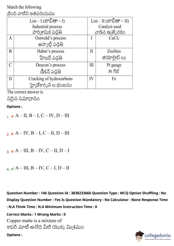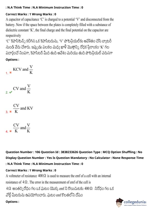 | TS EAMCET 2024 11 May Shift 1 Question Paper with Answer Key | Check Solution |