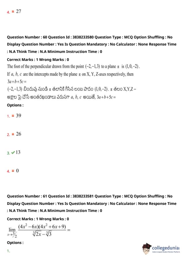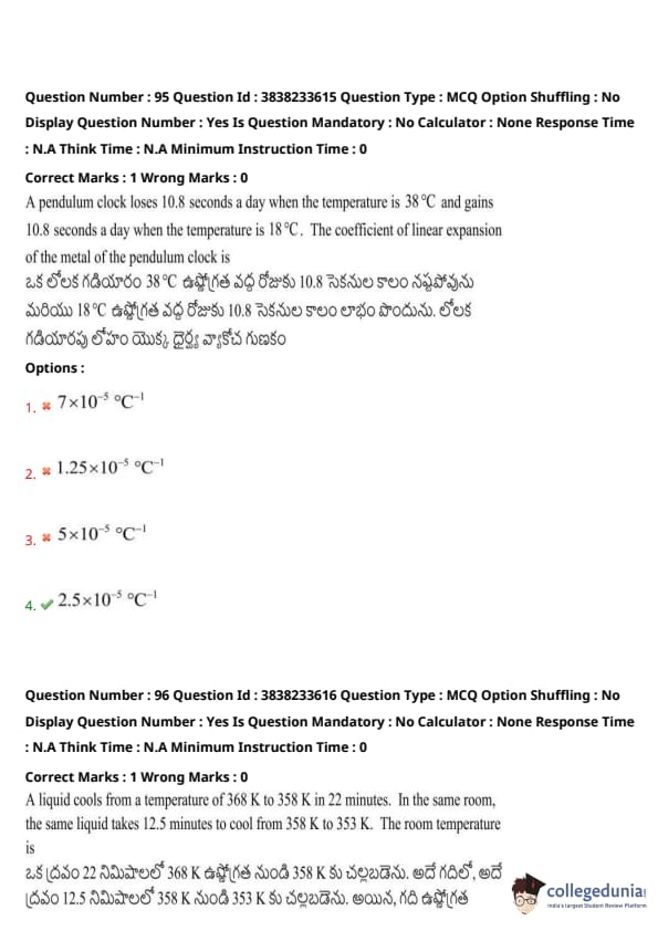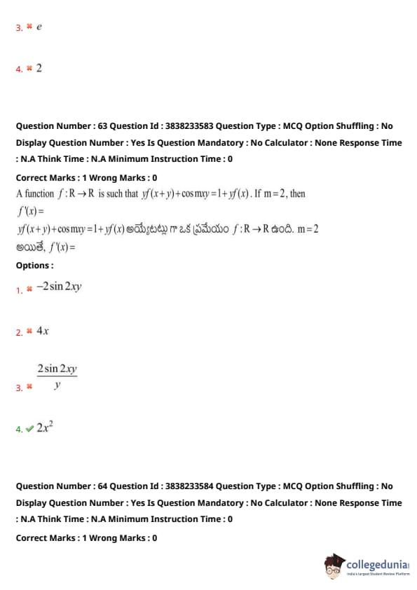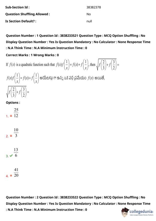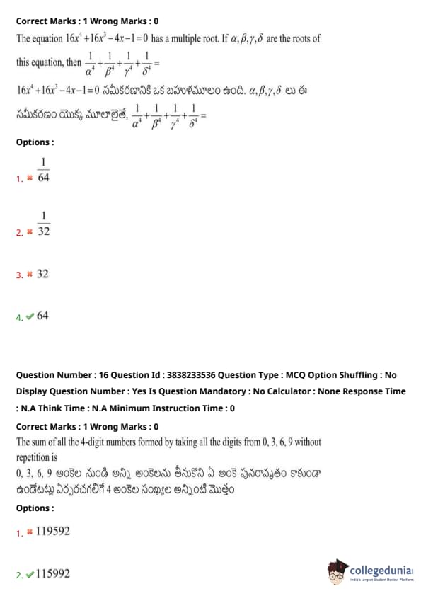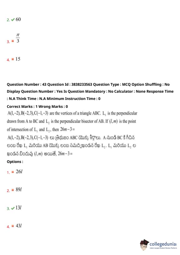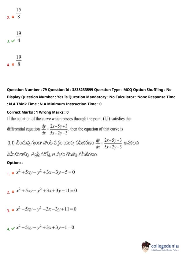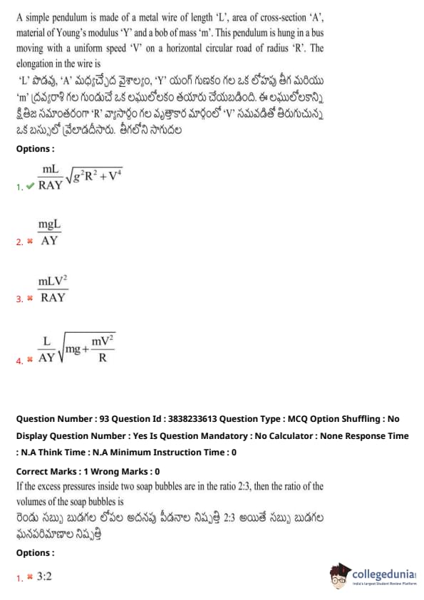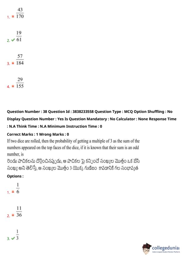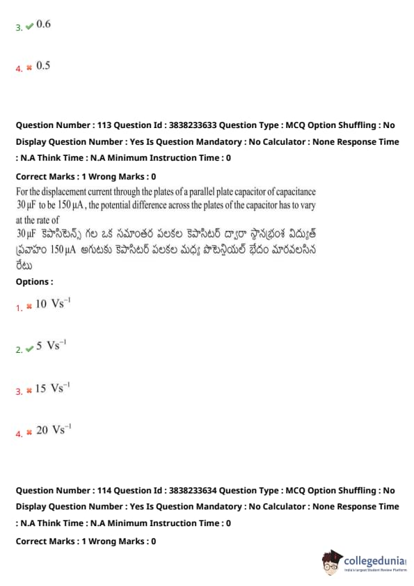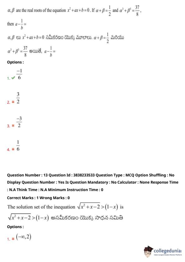 | TS EAMCET 2024 11 May Shift 1 Question Paper with Answer Key | Check Solution |