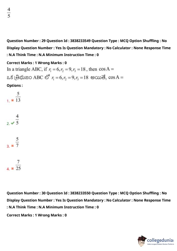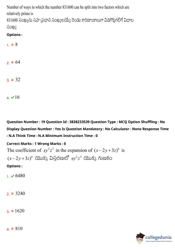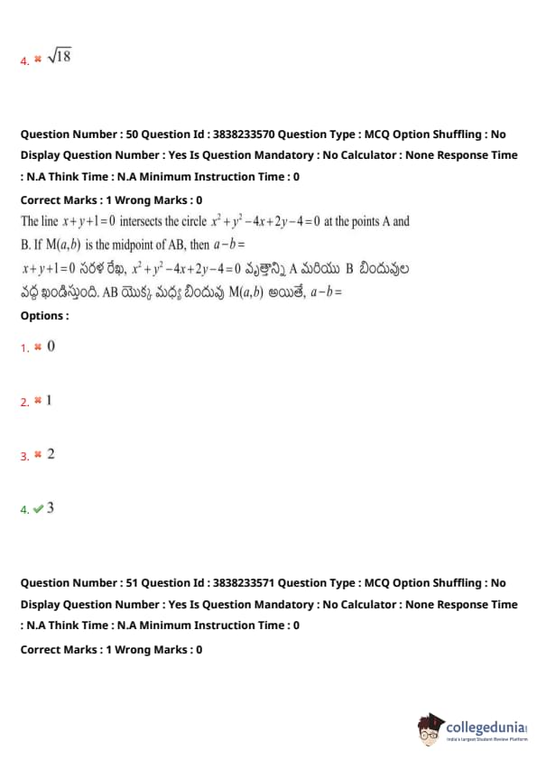 | TS EAMCET 2019 Question Paper | TS EAMCET 2018 Question Paper |