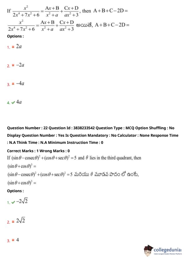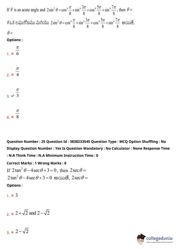 | TS EAMCET 2023 Question Paper | TS EAMCET 2022 Question Paper |