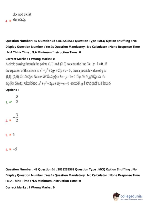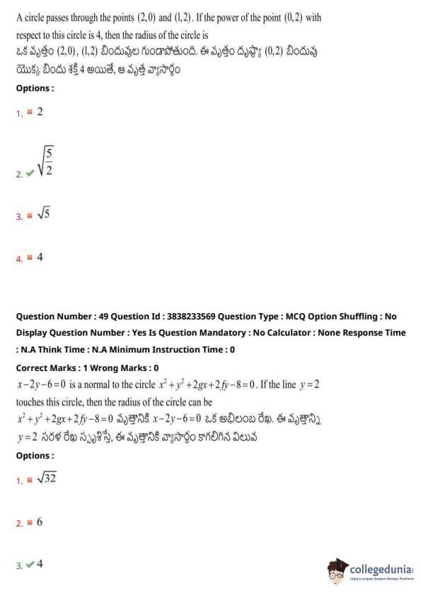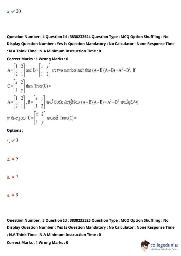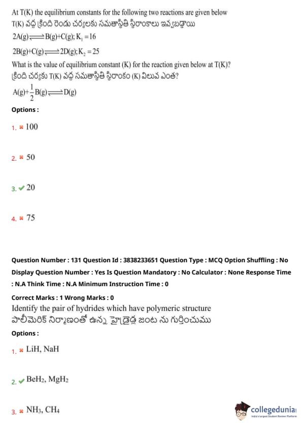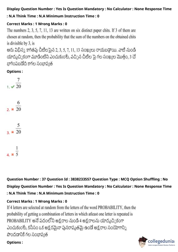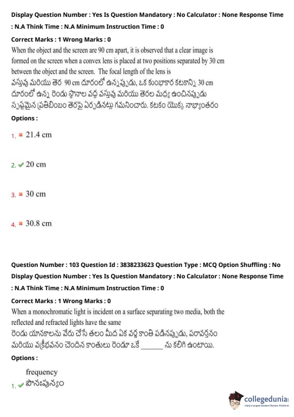 | TS EAMCET 2021 Question Paper | TS EAMCET 2020 Question Paper |