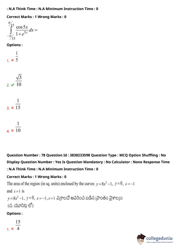 TS EAMCET 2024 Question Paper May 11 Shift 1 with Answer Key PDF is available here for download. JNTU, Hyderabad on behalf of TSCHE conducted TS EAMCET on May 11 from 9 AM to 12 PM. TS EAMCET 2024 Question Paper consists of 160 questions carrying 1 mark each. TS EAMCET 2024 Question Paper May 11 Shift 1 PDF for MPC includes three subjects, Physics, Chemistry and Mathematics. The Physics and Chemistry section of the paper includes 40 questions each while the Mathematics section includes a total of 80 questions.