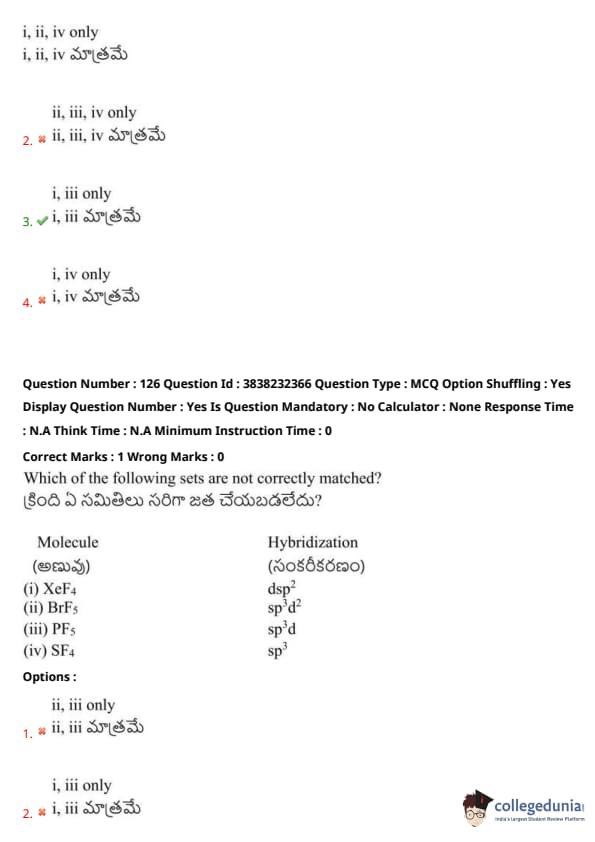 Which of the following sets are not correctly matched? \[ Molecule \quad Hybridization \] \[ (i) \, XeF_4 \quad dsp^2 \quad (ii) \, BrF_5 \quad sp^3d^2 \quad (iii) \, PF_5 \quad sp^3d \quad (iv) \, SF_4 \quad sp^3 \]