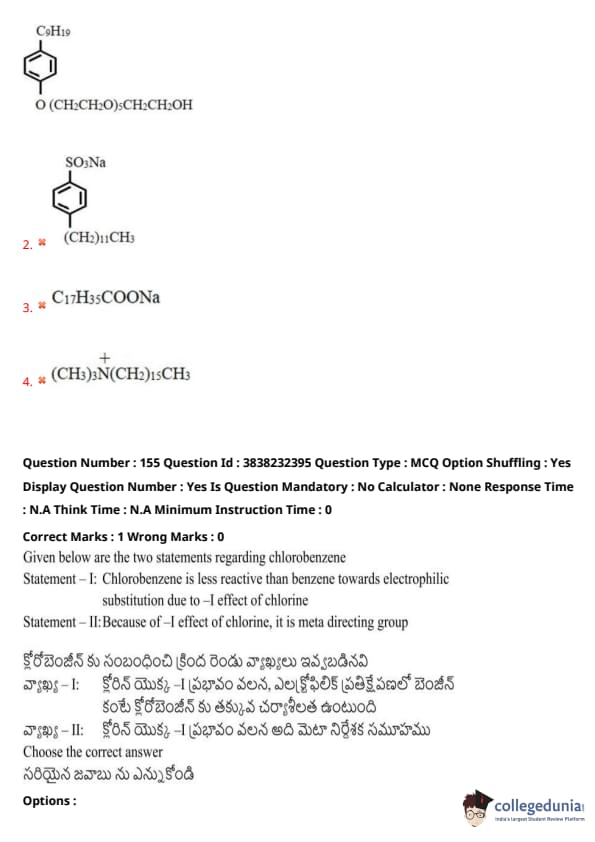 Statement II: Because of the -I effect of chlorine, it is a meta directing group.