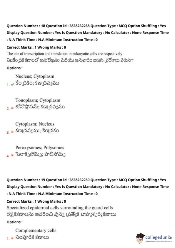 | TS EAMCET 2019 Question Paper | TS EAMCET 2018 Question Paper |