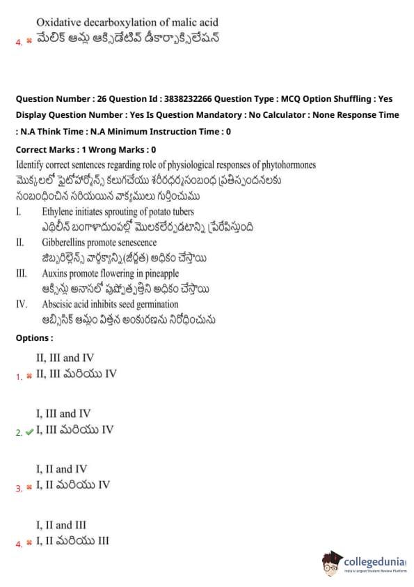 III. Auxins promote flowering in pineapple