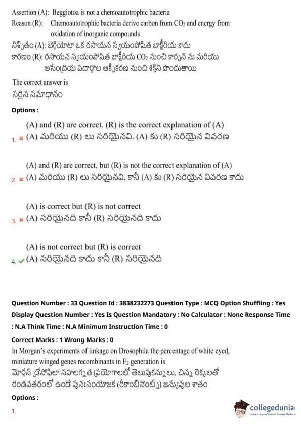 Assertion (A): Beggiatoa is not a chemoautotrophic bacterium.