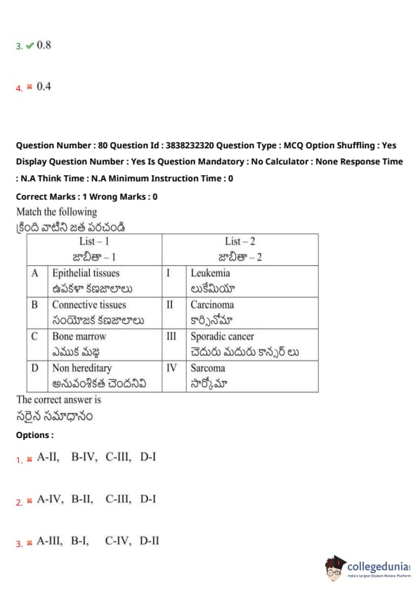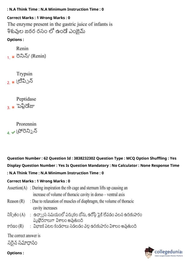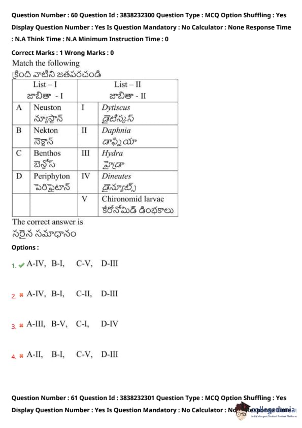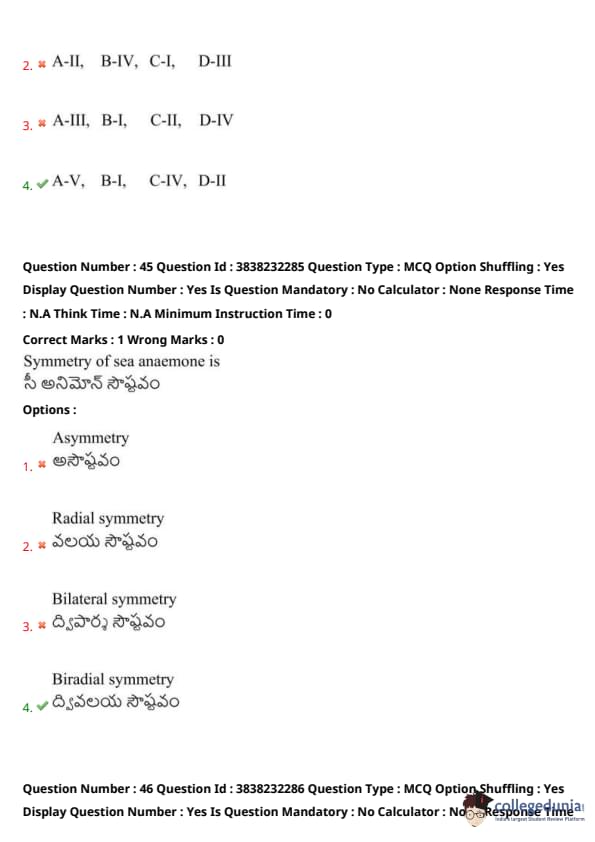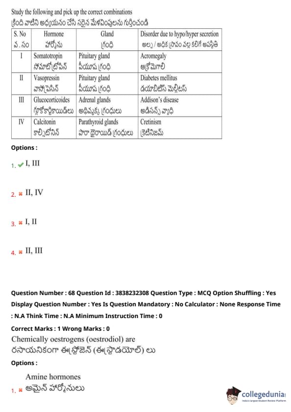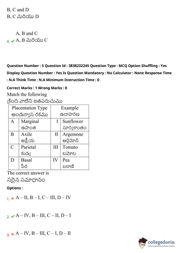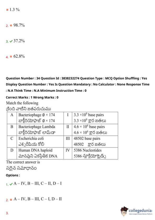 TS EAMCET 2024 Question Paper May 7 Shift 1 with Answer Key PDF is available here. JNTU, Hyderabad on behalf of TSCHE conducted TS EAMCET on May 7 from 9 AM to 12 PM. TS EAMCET 2024 Question Paper consists of 160 questions carrying 1 mark each. TS EAMCET 2024 Question Paper May 7 Shift 1 PDF for BiPC includes four subjects, Physics, Chemistry and Biology with Botany & Zoology. Each subject includes 40 questions.