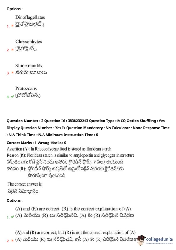 Assertion (A): In Rhodophyceae, food is stored as floridean starch.