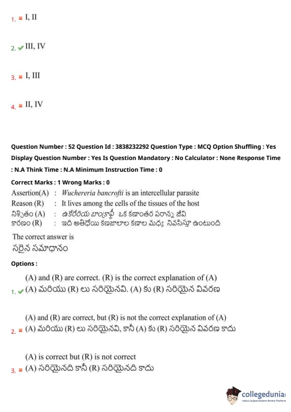 Assertion (A): Wuchereria bancrofti is an intercellular parasite.