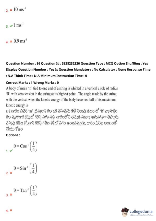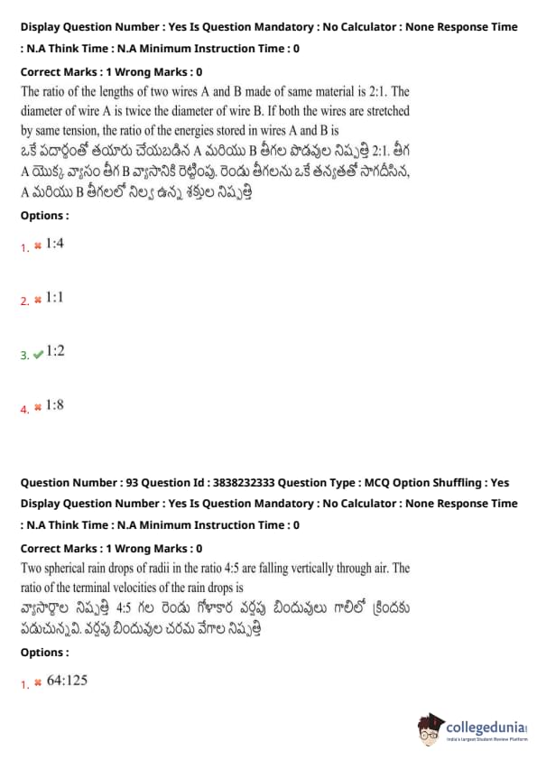 TS EAMCET Questions with Solutions