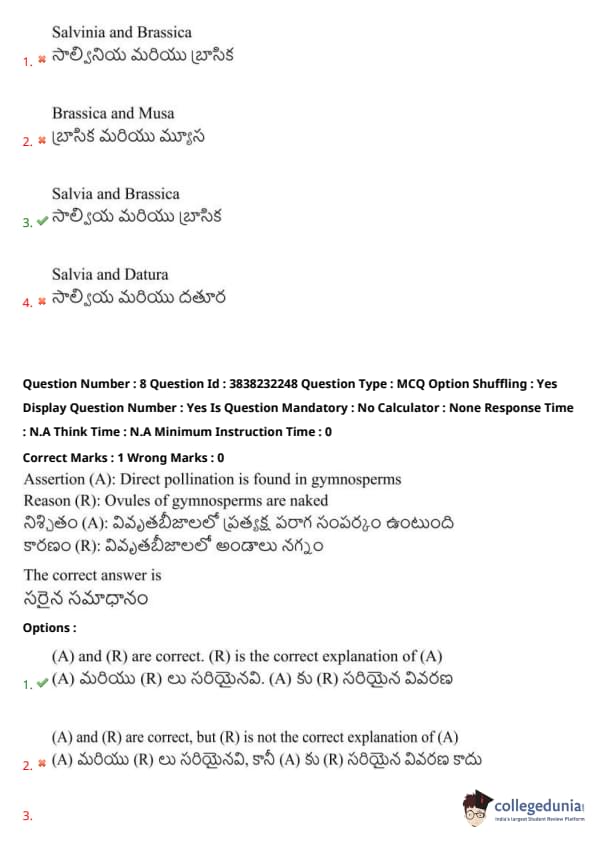 Assertion (A): Direct pollination is found in gymnosperms.