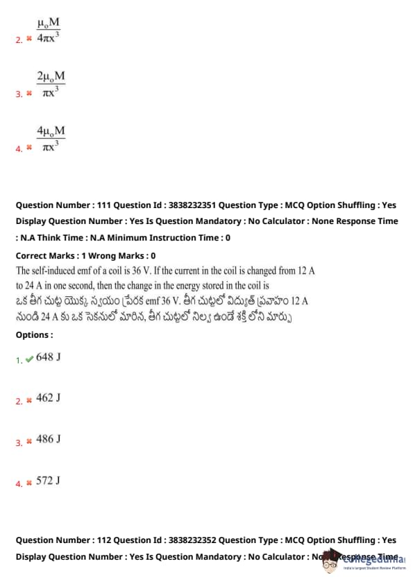 | TS EAMCET 2021 Question Paper | TS EAMCET 2020 Question Paper |