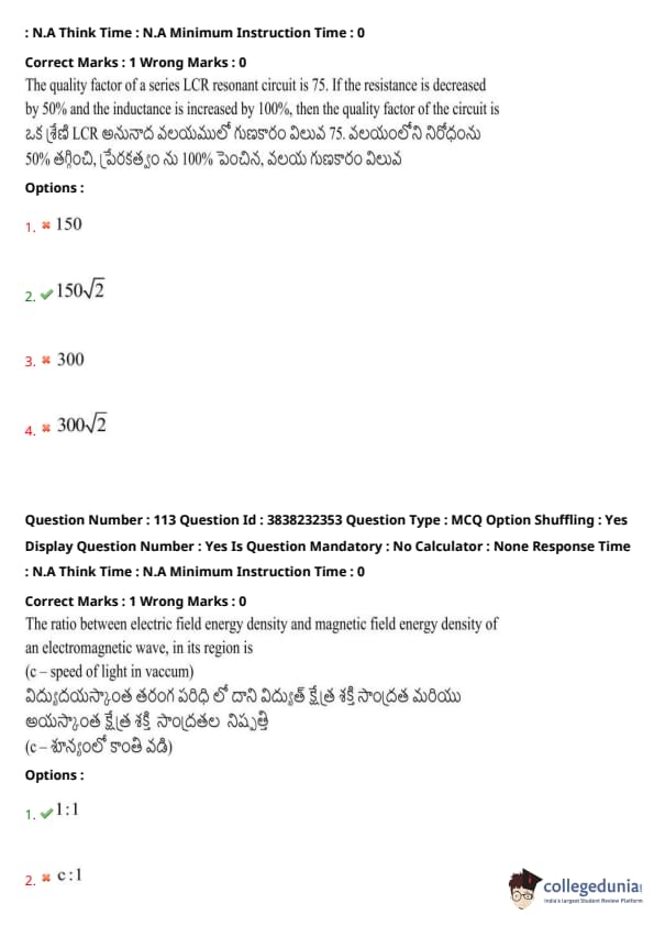 | TS EAMCET 2024 Question Paper with Answer Key | Check Solution |