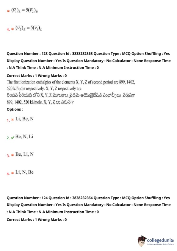 The first ionization enthalpies of the elements X, Y, Z of the second period are 899, 1402, 520 kJ/mol respectively. X, Y, Z respectively are: